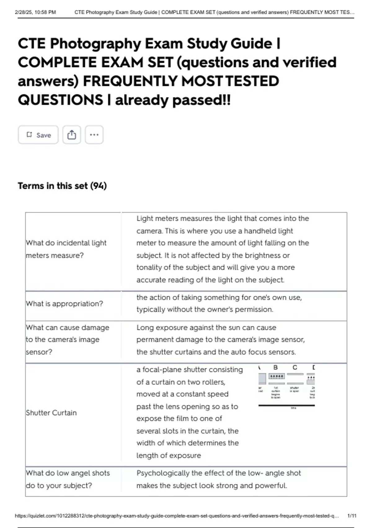 2/28/25, 10:58 PM CTE Photography Exam Study Guide | COMPLETE EXAM SET (questions and verified answers) FREQUENTLY MOST TES…