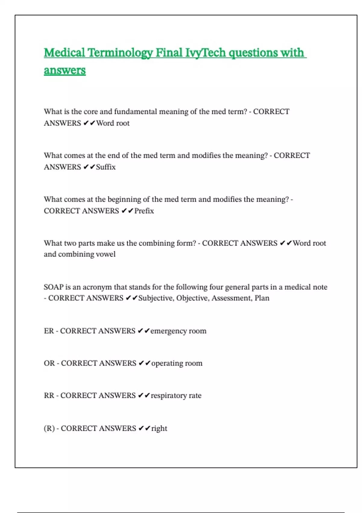 - CORRECT ANSWERS ✔✔Subjective, Objective, Assessment, Plan