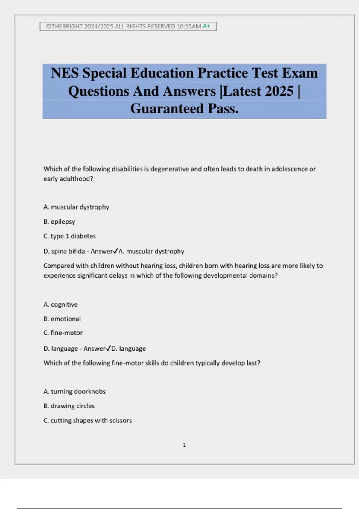 NES Special Education Practice Test Exam