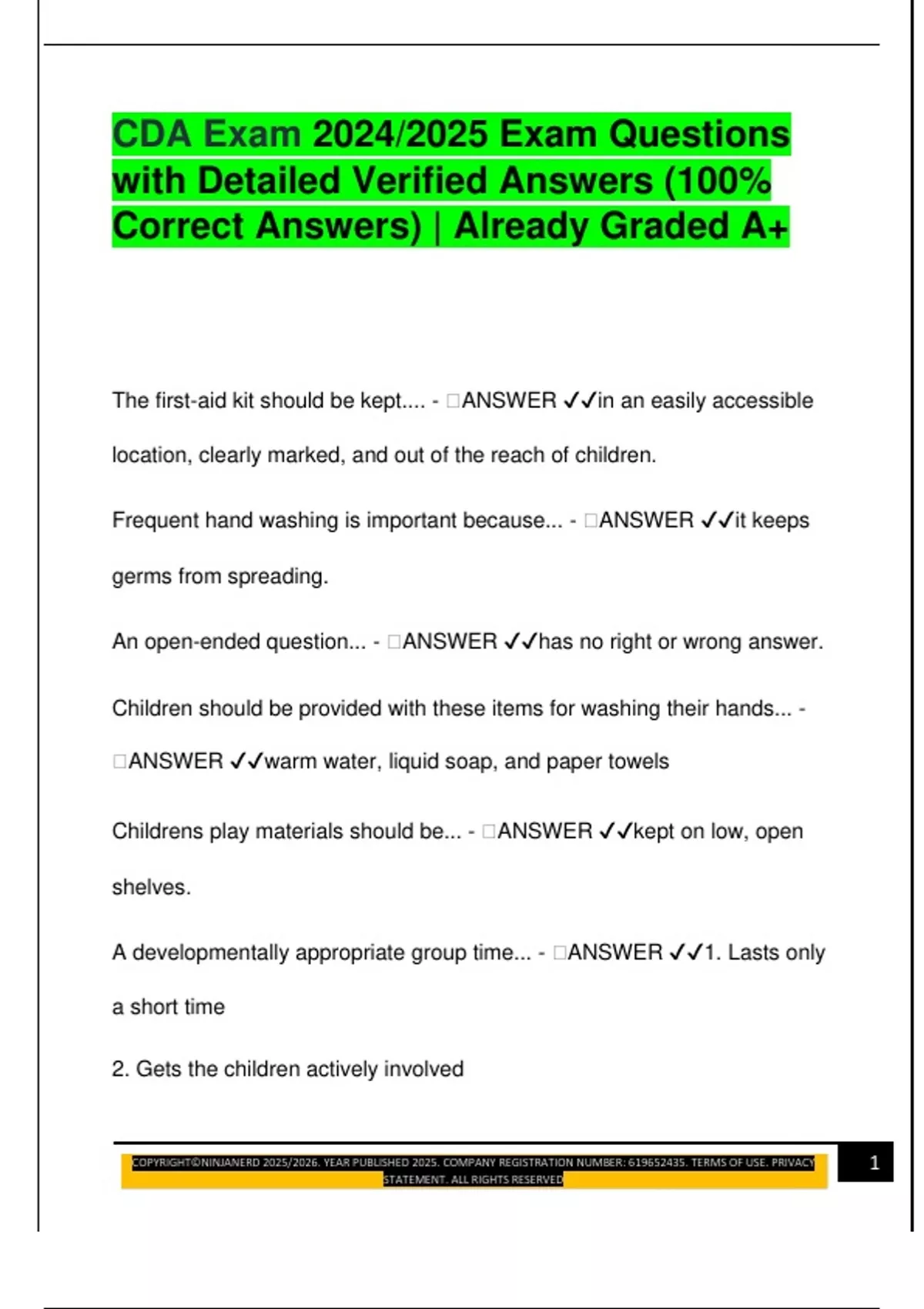 A developmentally appropriate group time... - 🧠ANSWER ✔✔1. Lasts only
