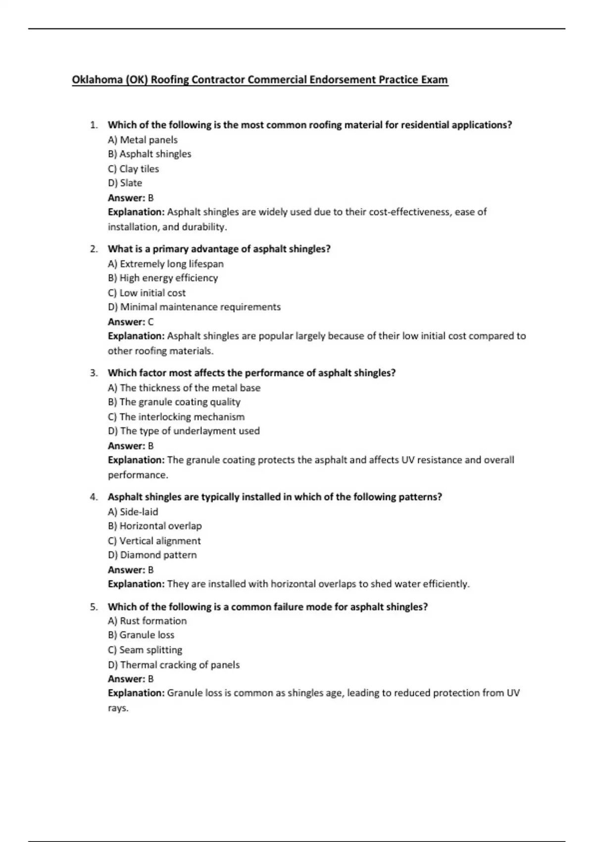 Oklahoma (OK) Roofing Contractor Commercial Endorsement Practice Exam