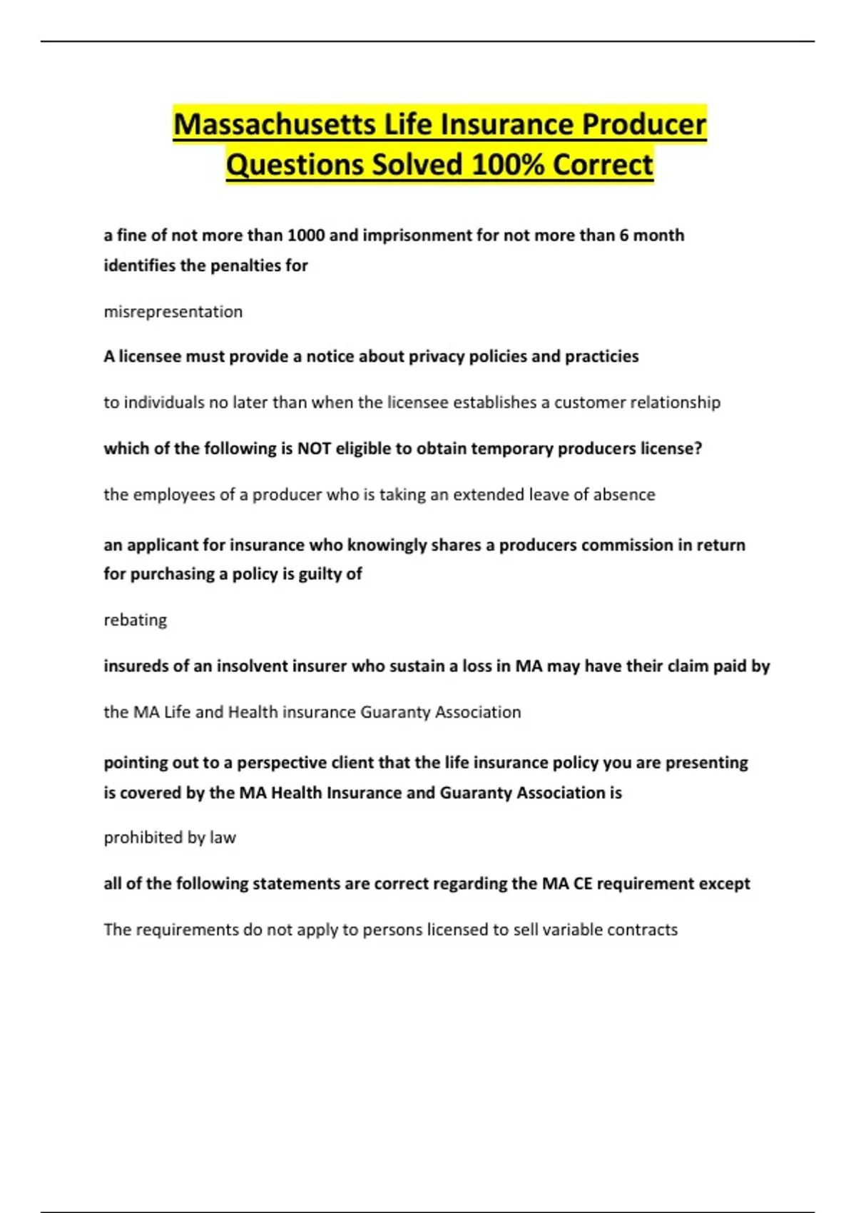 Questions Solved 100% Correct