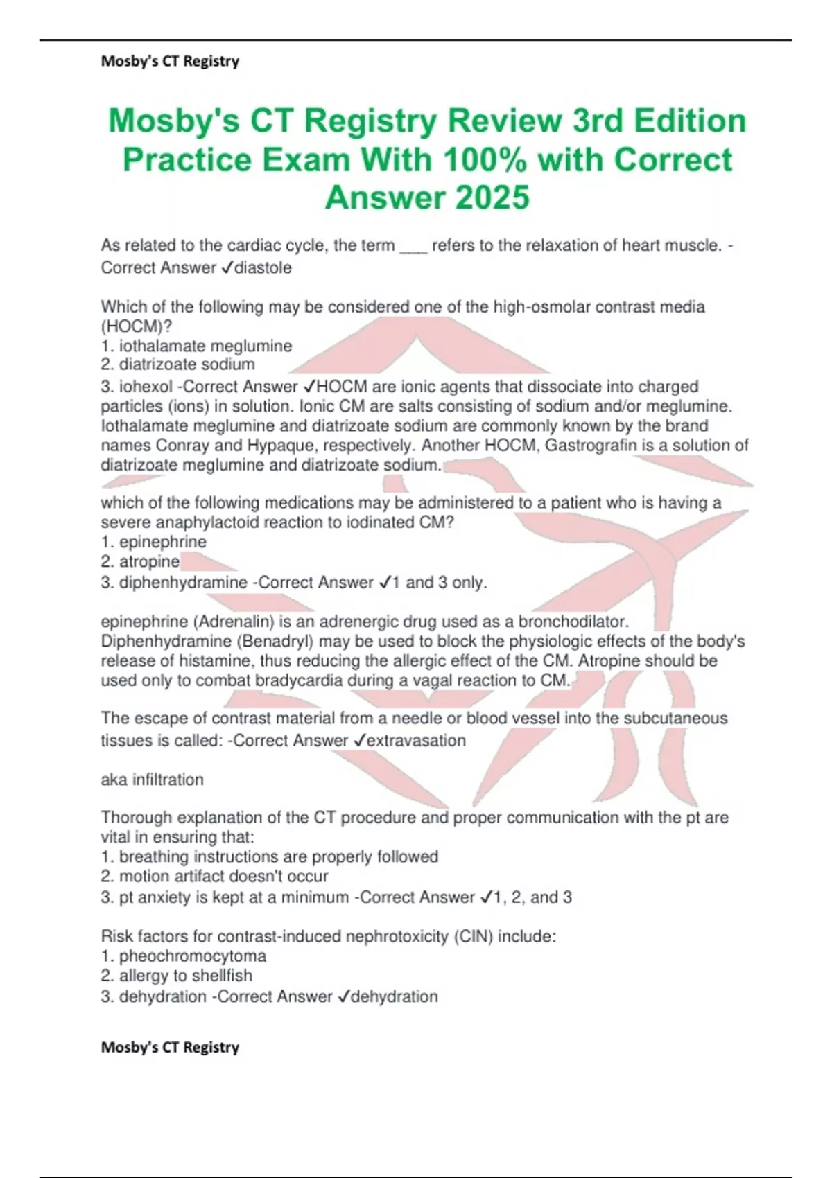 Mosby's CT Registry Review 3rd Edition Practice Exam With 100% with Correct Answer 2025