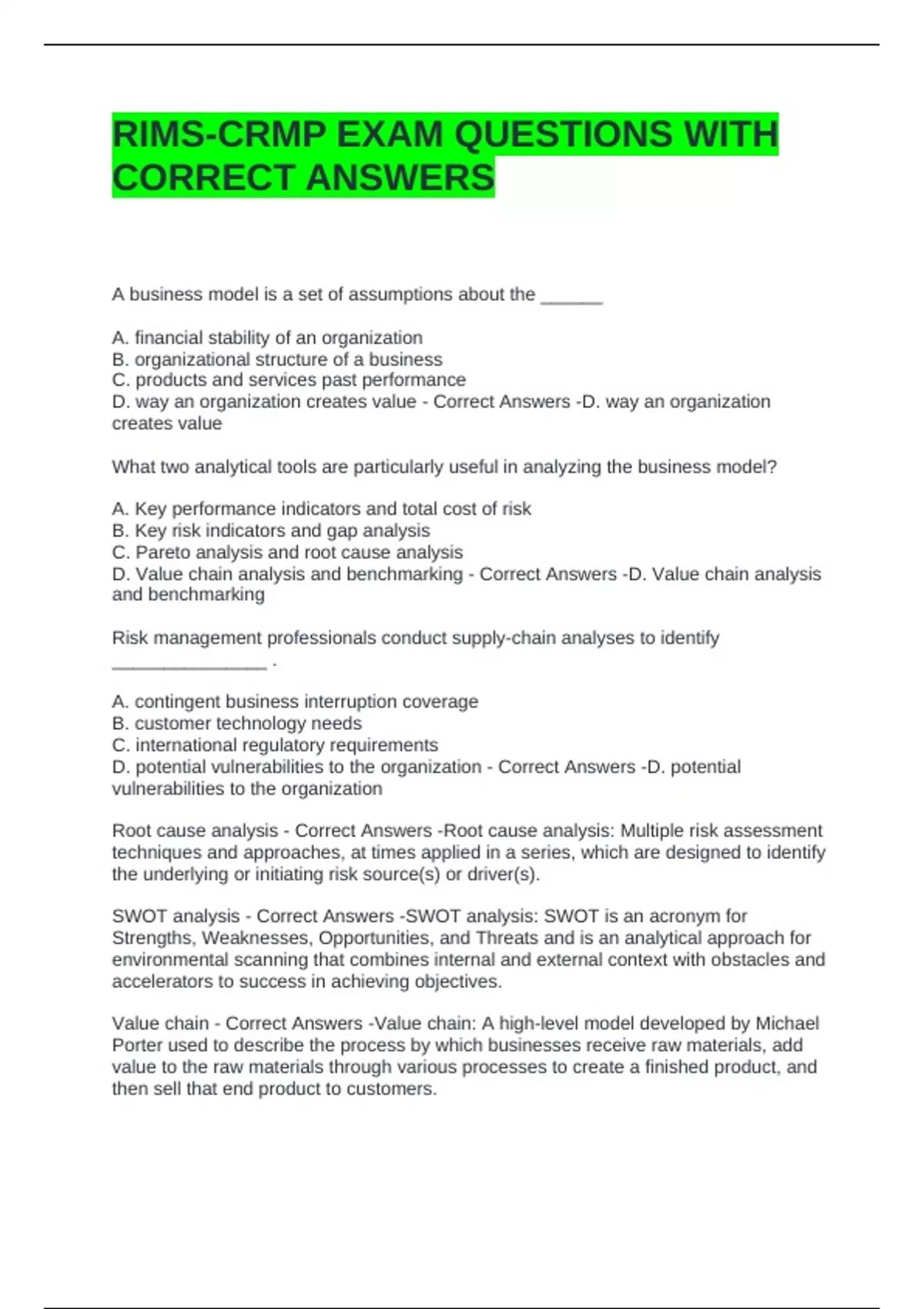 RIMS-CRMP EXAM QUESTIONS WITH