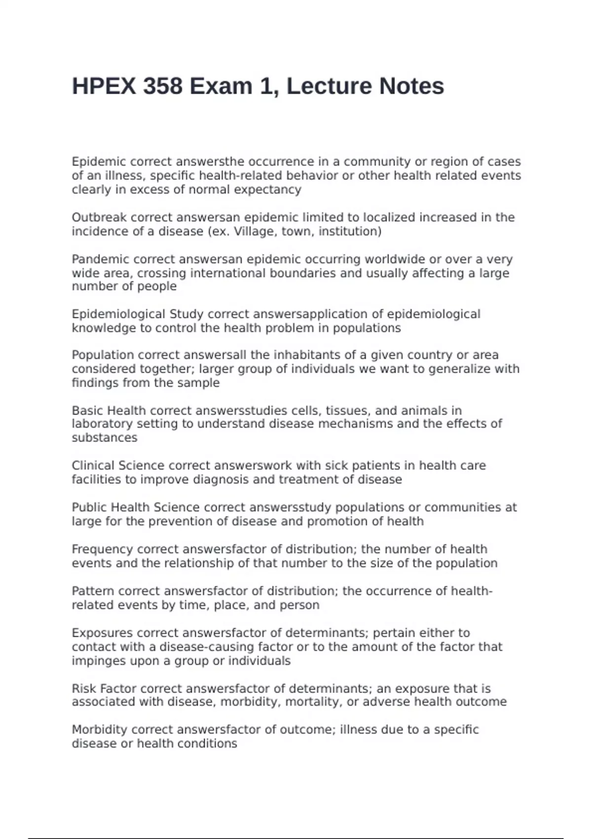 HPEX 358 Exam 1, Lecture Notes with 100% correct answers 2025