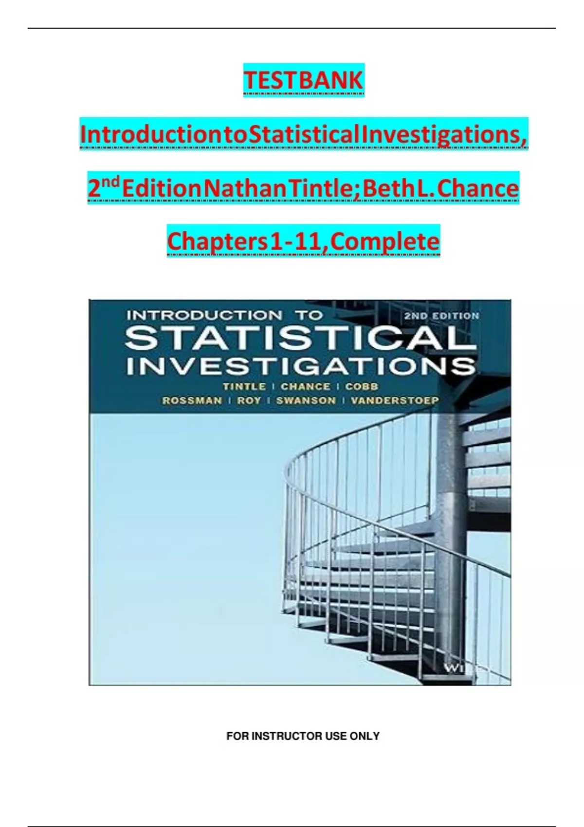 TEST BANK Introduction to Statistical Investigations, 2nd Edition Nathan Tintle; Beth L. Chance Chapters 1 - 11, Complete