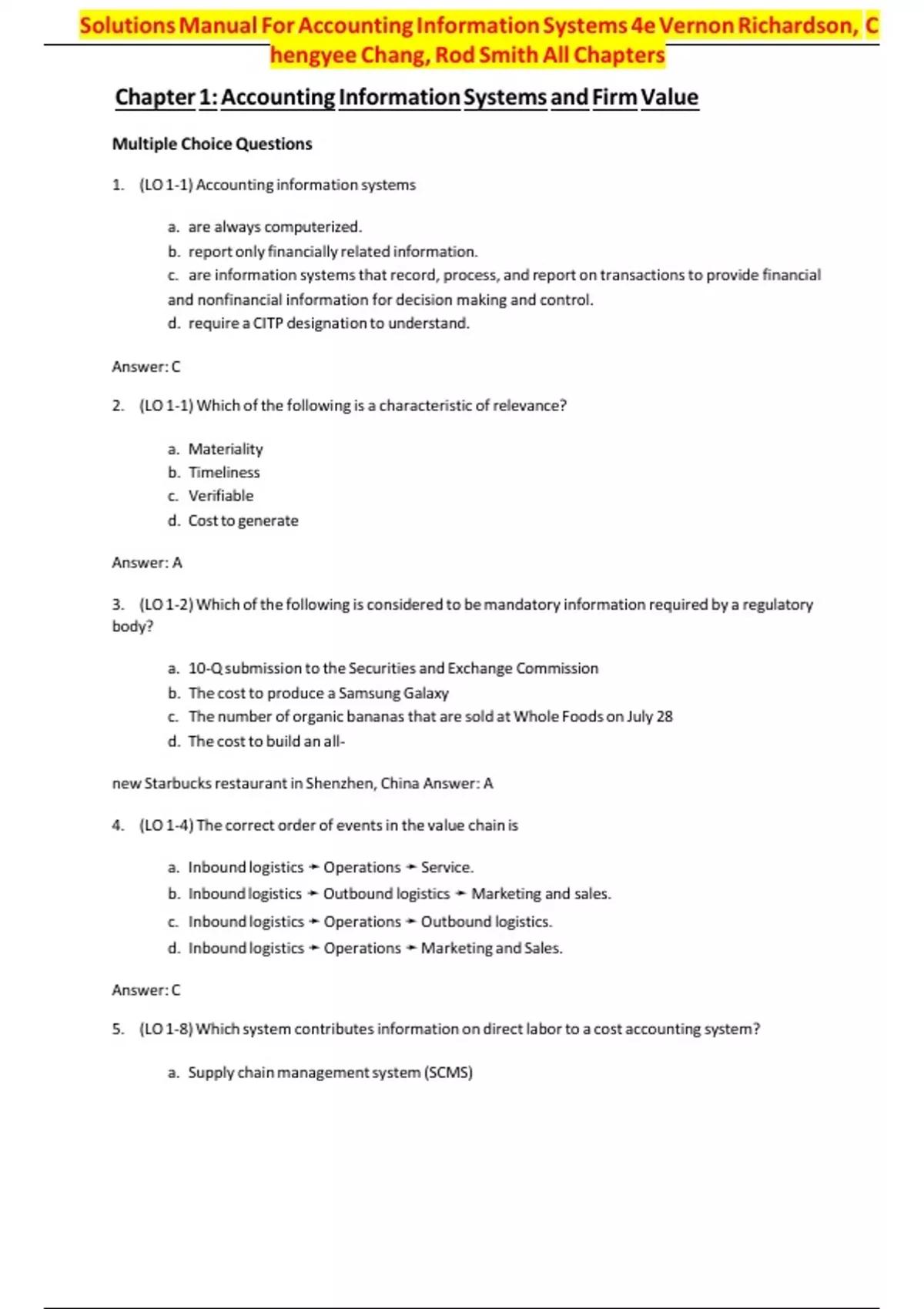 , EndvofvChaptervSolutionsvManual:vRichardson,vChang,vSmith,vAccountingvInformationvSystems,v4thvedition