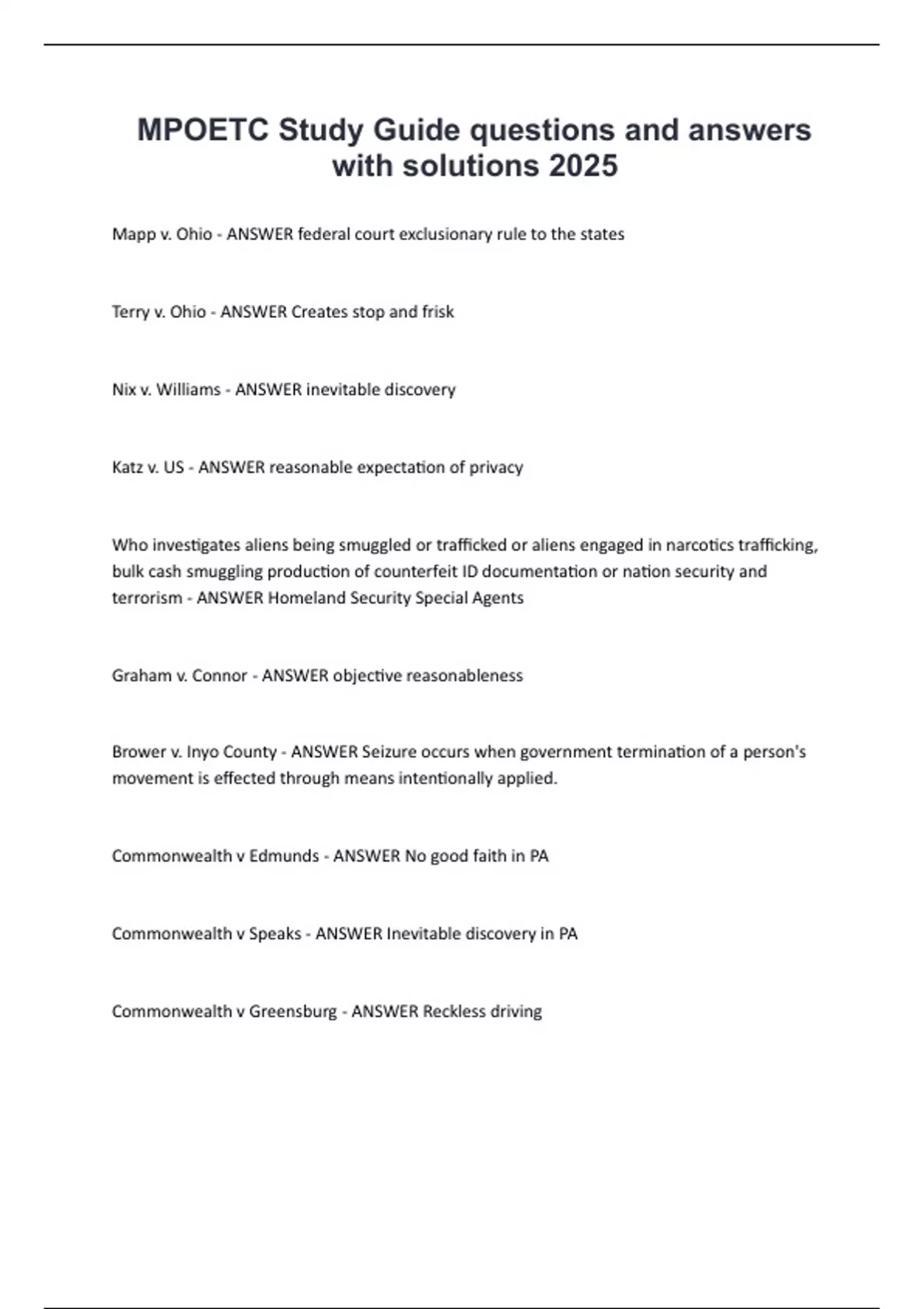 Terry v. Ohio - ANSWER Creates stop and frisk