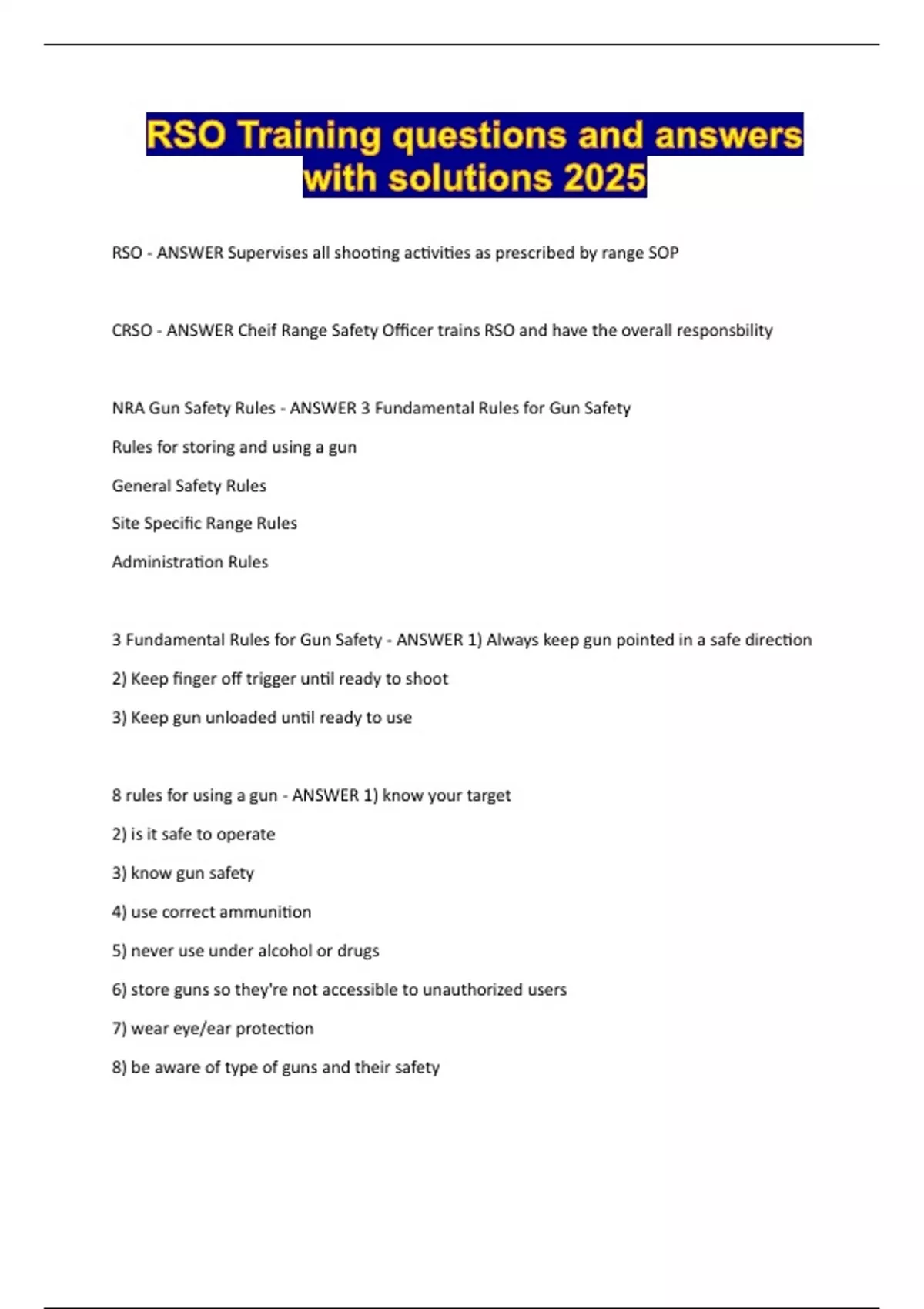 8 rules for using a gun - ANSWER 1) know your target