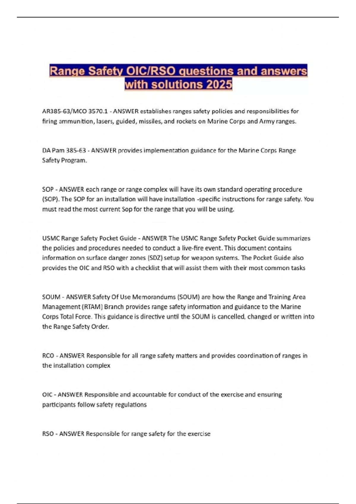 Range Safety OIC/RSO questions and answers with solutions 2025