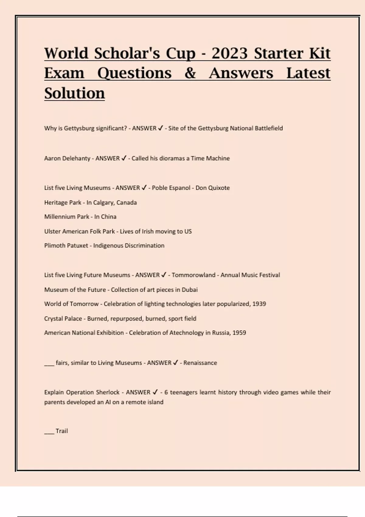 Explain Operation Sherlock - ANSWER ✔ - 6 teenagers learnt history through video games while their