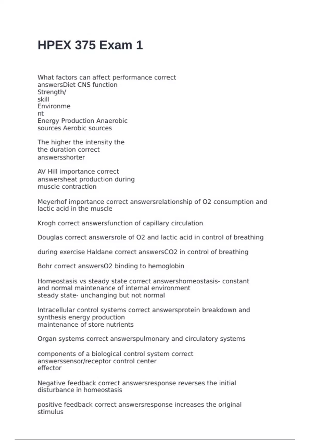 Douglas correct answersrole of O2 and lactic acid in control of breathing