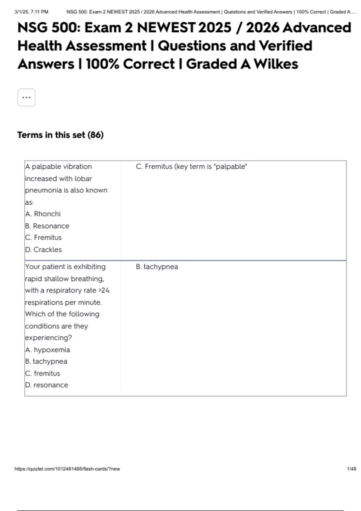 , 3/1/25, 7:11 PM NSG 500: Exam 2 NEWEST Advanced Health Assessment | Questions and Verified Answers | 100% Correct | Graded A …