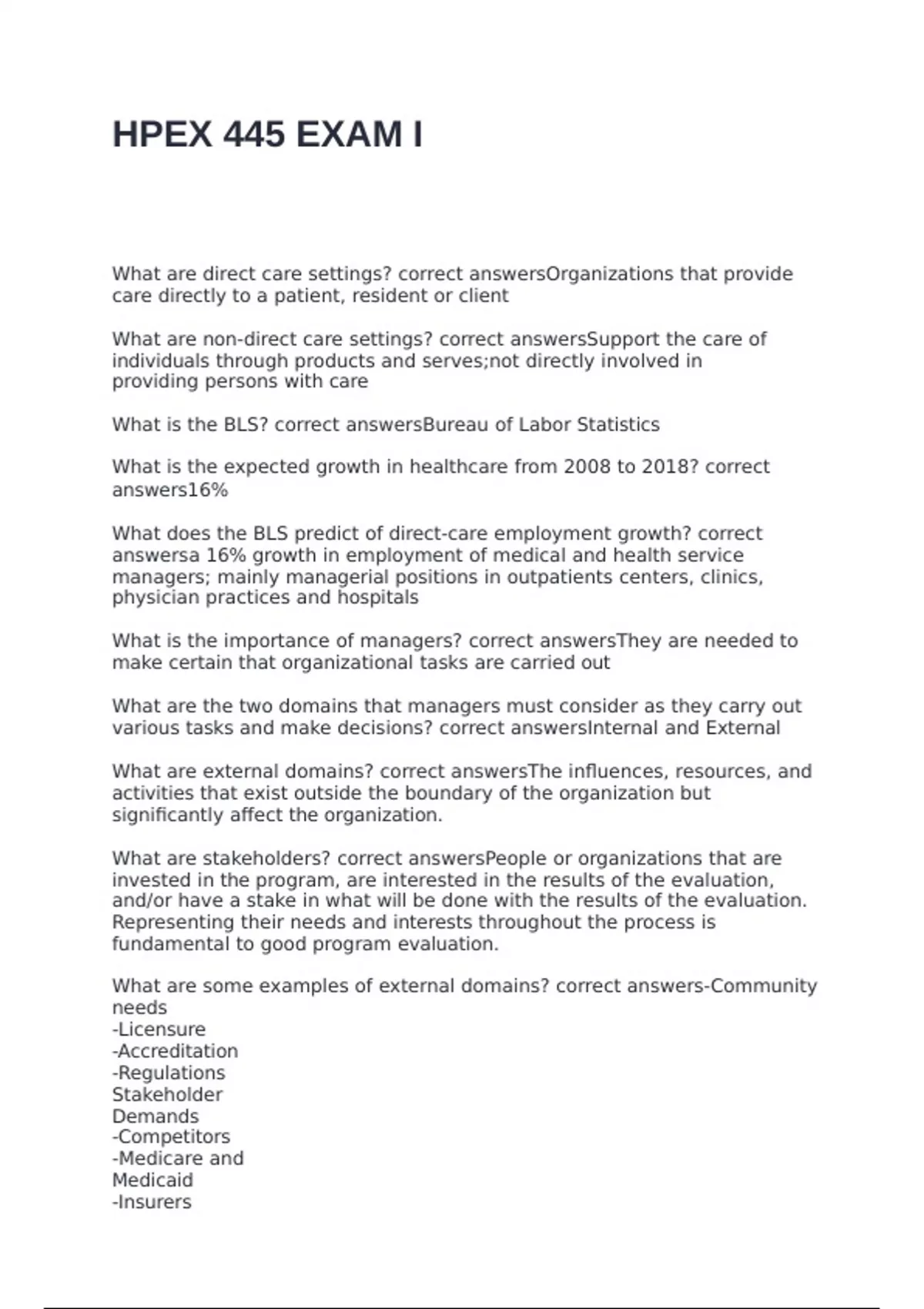 What are direct care settings? correct answersOrganizations that provide