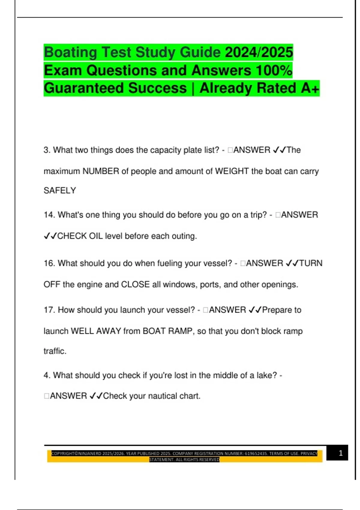 Boating Test Study Guide 2024/2025 Exam Questions and Answers 100% Guaranteed Success | Already Rated A+