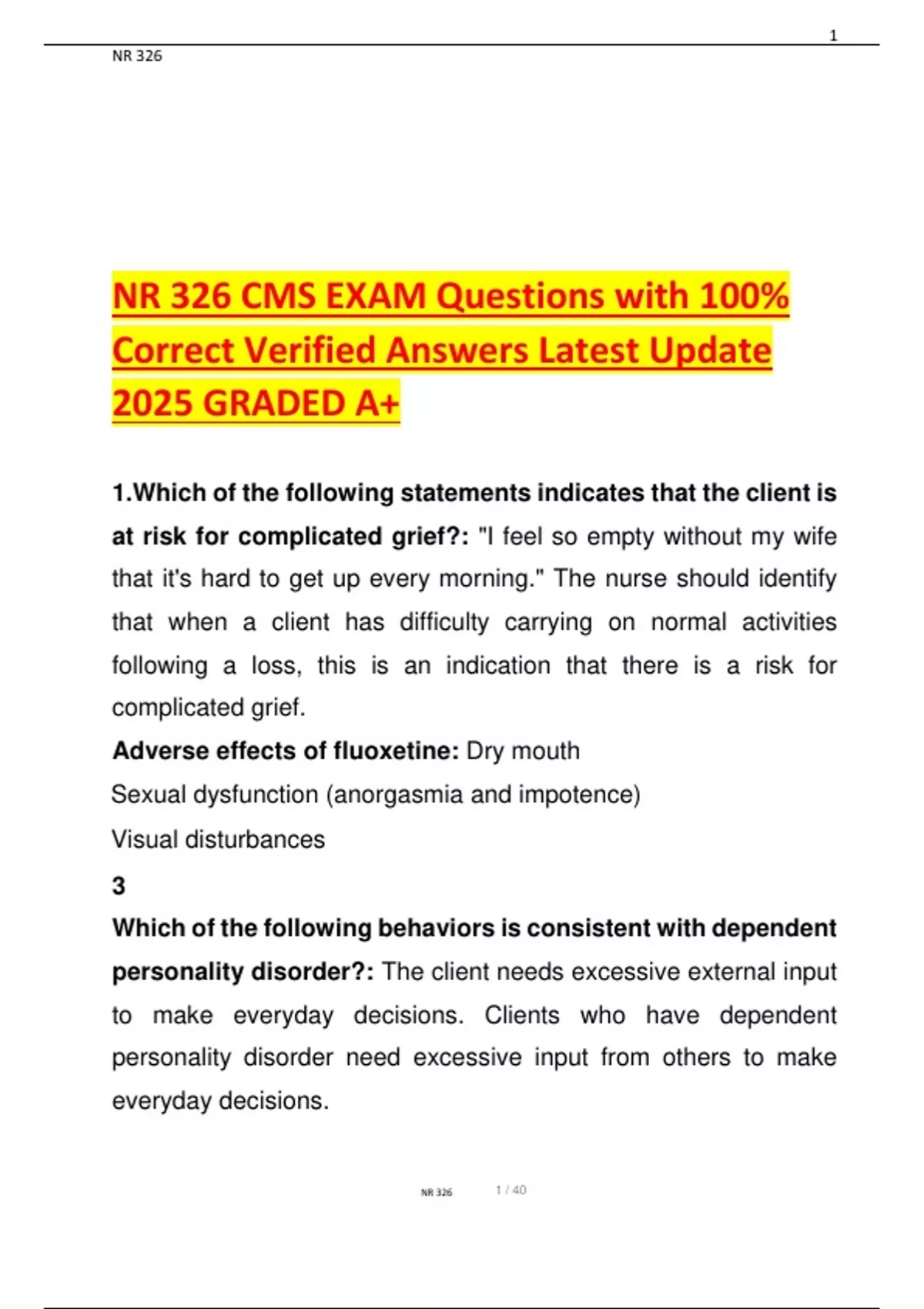 NR 326 CMS EXAM Questions with 100%