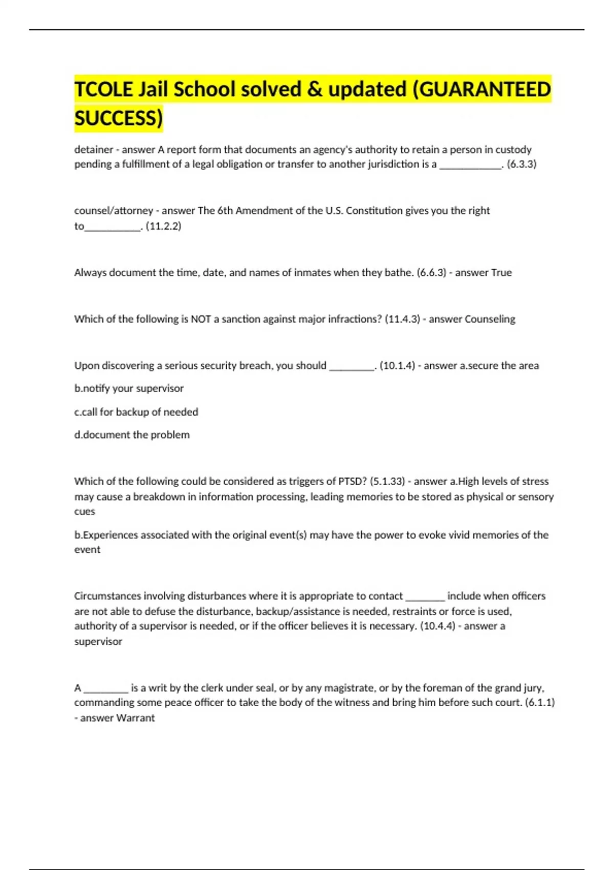 TCOLE Jail School solved & updated (GUARANTEED SUCCESS).