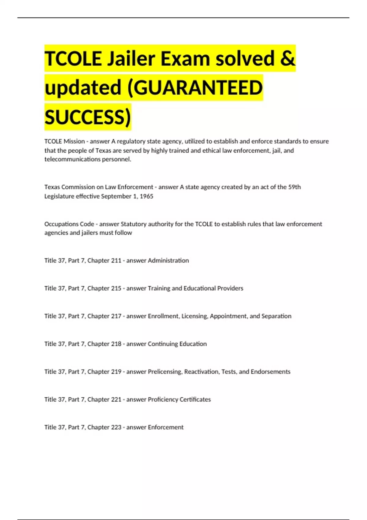 TCOLE Jailer Exam solved & updated (GUARANTEED SUCCESS)