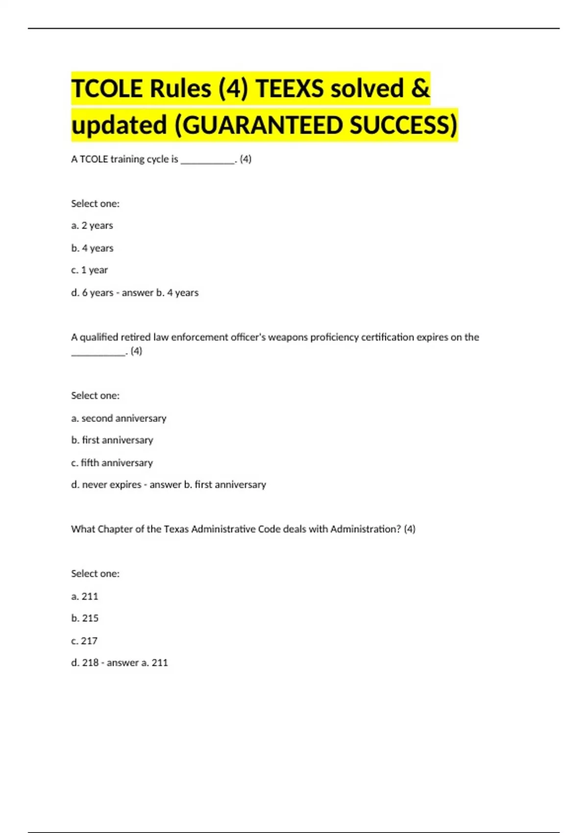 TCOLE Rules (4) TEEXS solved & updated (GUARANTEED SUCCESS).