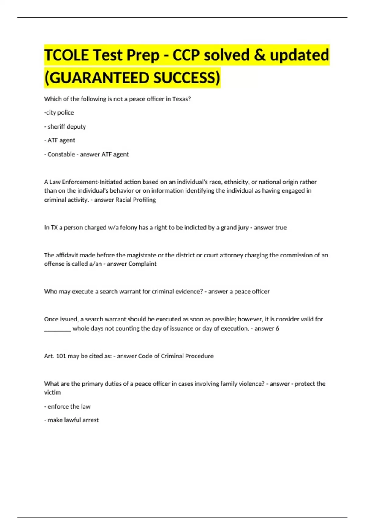 TCOLE Test Prep - CCP solved & updated (GUARANTEED SUCCESS).