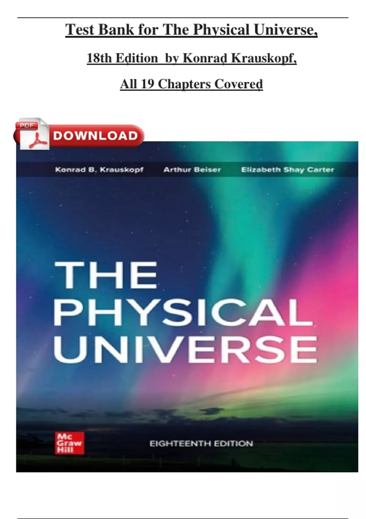 Test Bank for The Physical Universe, 18th Edition by Konrad Krauskopf, ISBN: 9781266661815, All Chapters 1-19 Fully Covered Newest Version