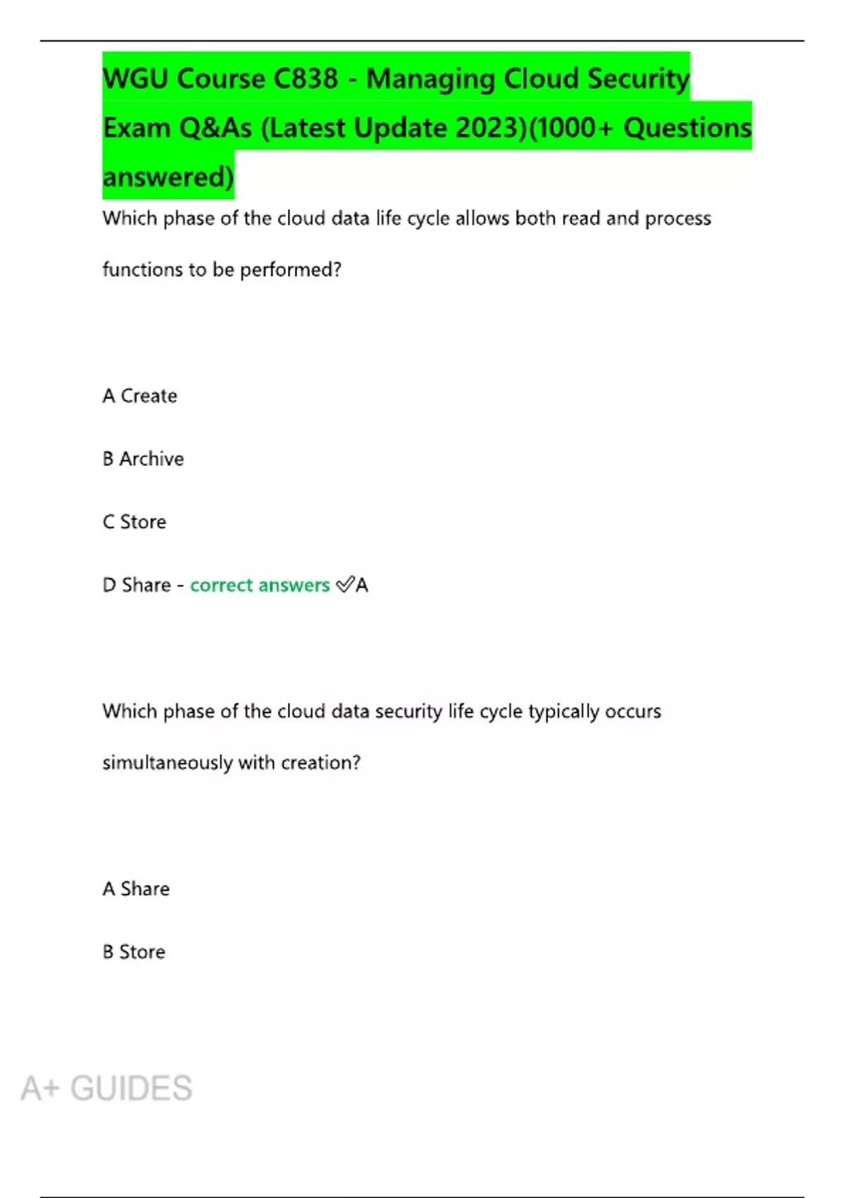 Wgu course c838 managing cloud security exam q as latest update questions answered WGU C838 exam questions Managing cloud security WGU WGU cloud security exam updates C838 latest exam questions 2023 1000 questions WGU C838 C838 exam answers 2023 WGU course C838 Q&A Latest cloud security exam prep WGU C838 study guide Cloud security exam resources WGU WGU cloud security course C838 managing cloud security WGU exam practice questions C838 exam preparation Cloud security certification guide WGU exam help C838 C838 course material WGU WGU cloud security exam answer key WGU C838 2023 exam tips Managing cloud security questions C838 practice exam WGU Cloud security exam 2023 updates WGU C838 course answers Cloud security study questions C838 exam tutorial WGU WGU exam insights C838 C838 WGU exam help Cloud security assessment questions