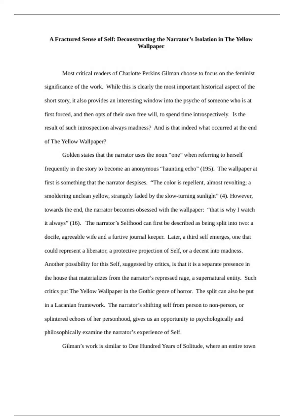 Gilman’s work is similar to One Hundred Years of Solitude, where an entire town