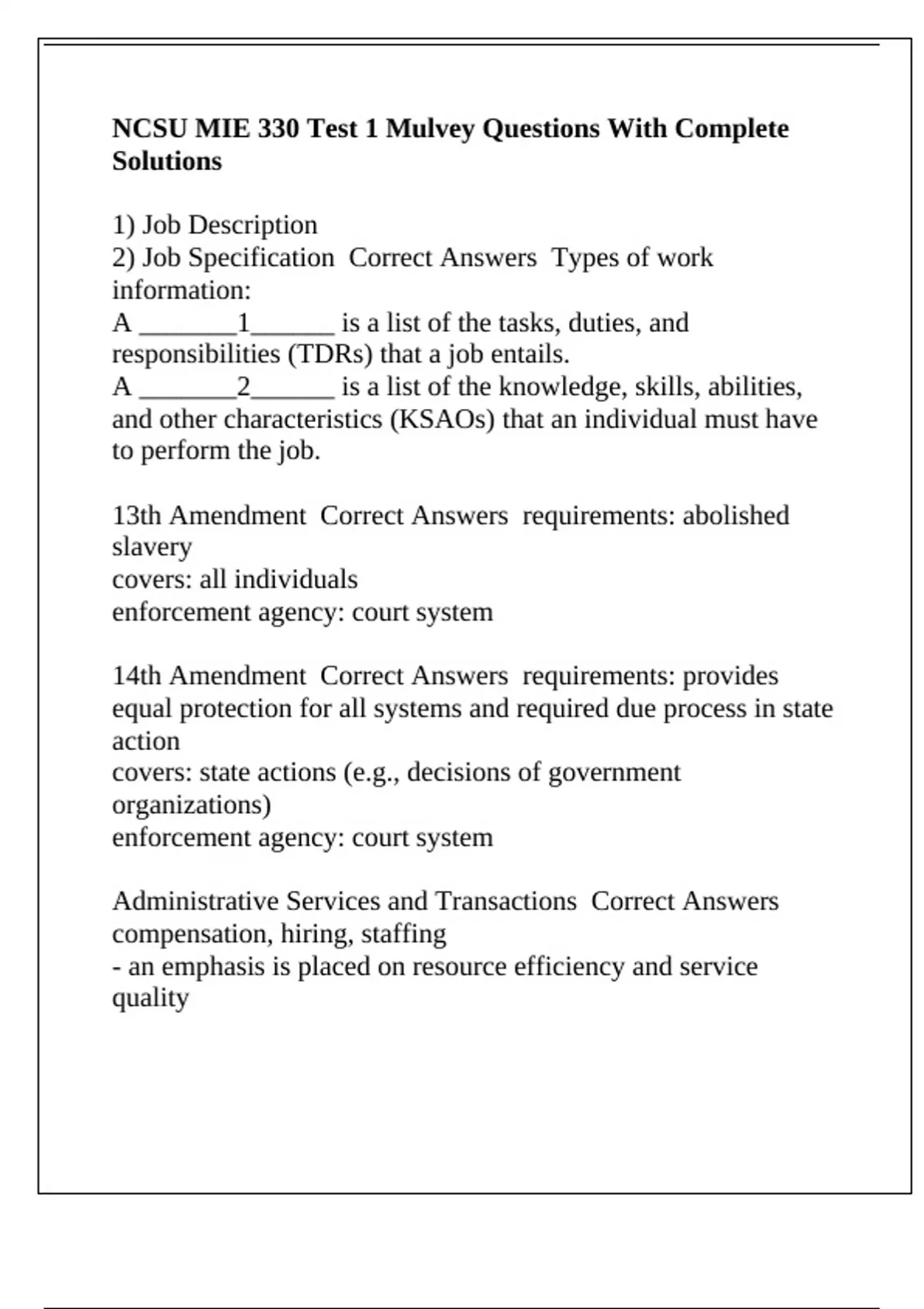 NCSU MIE 330 Test 1 Mulvey Questions With Complete