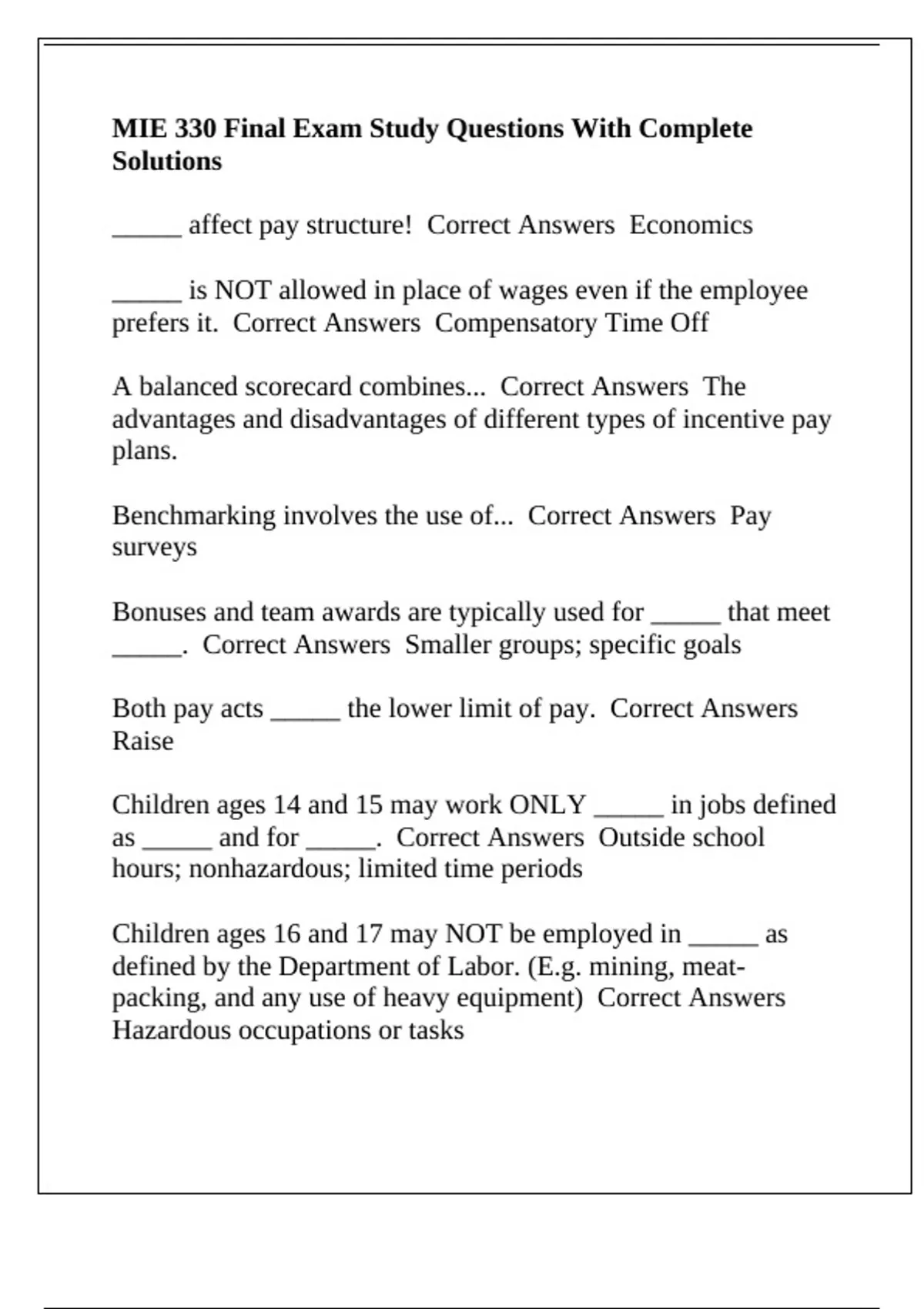 MIE 330 Final Exam Study Questions With Complete Solutions