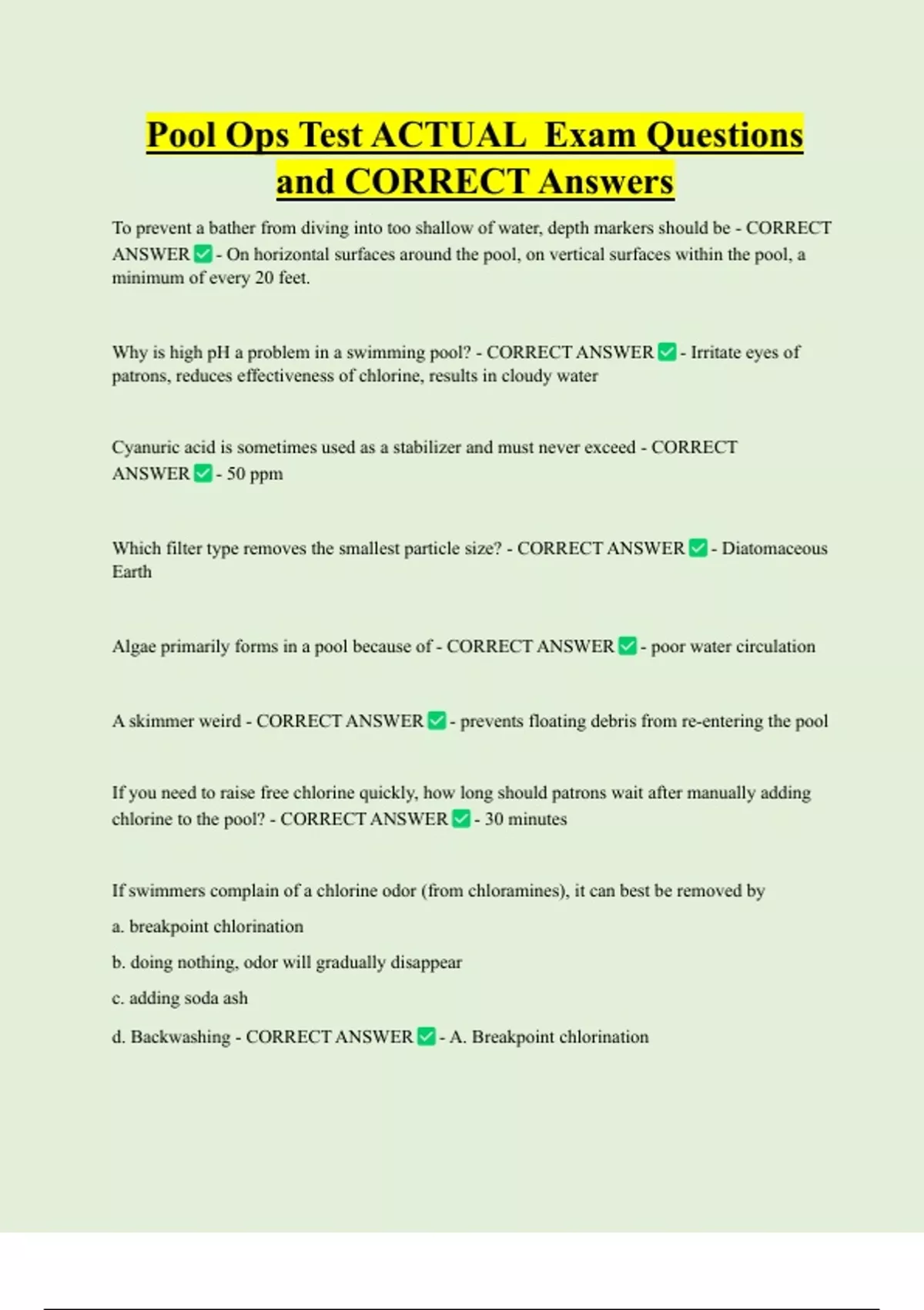 , acceptable level of free chlorine in swimming pool is - CORRECT ANSWER - 1-3 ppm
