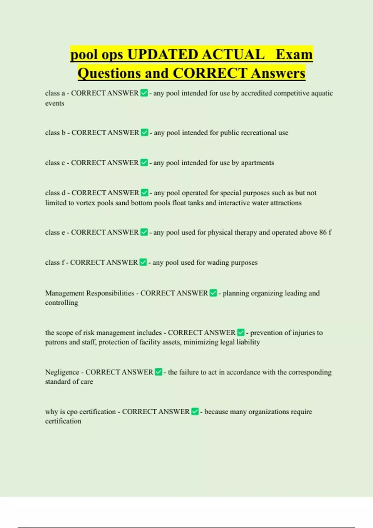 class d - CORRECT ANSWER - any pool operated for special purposes such as but not