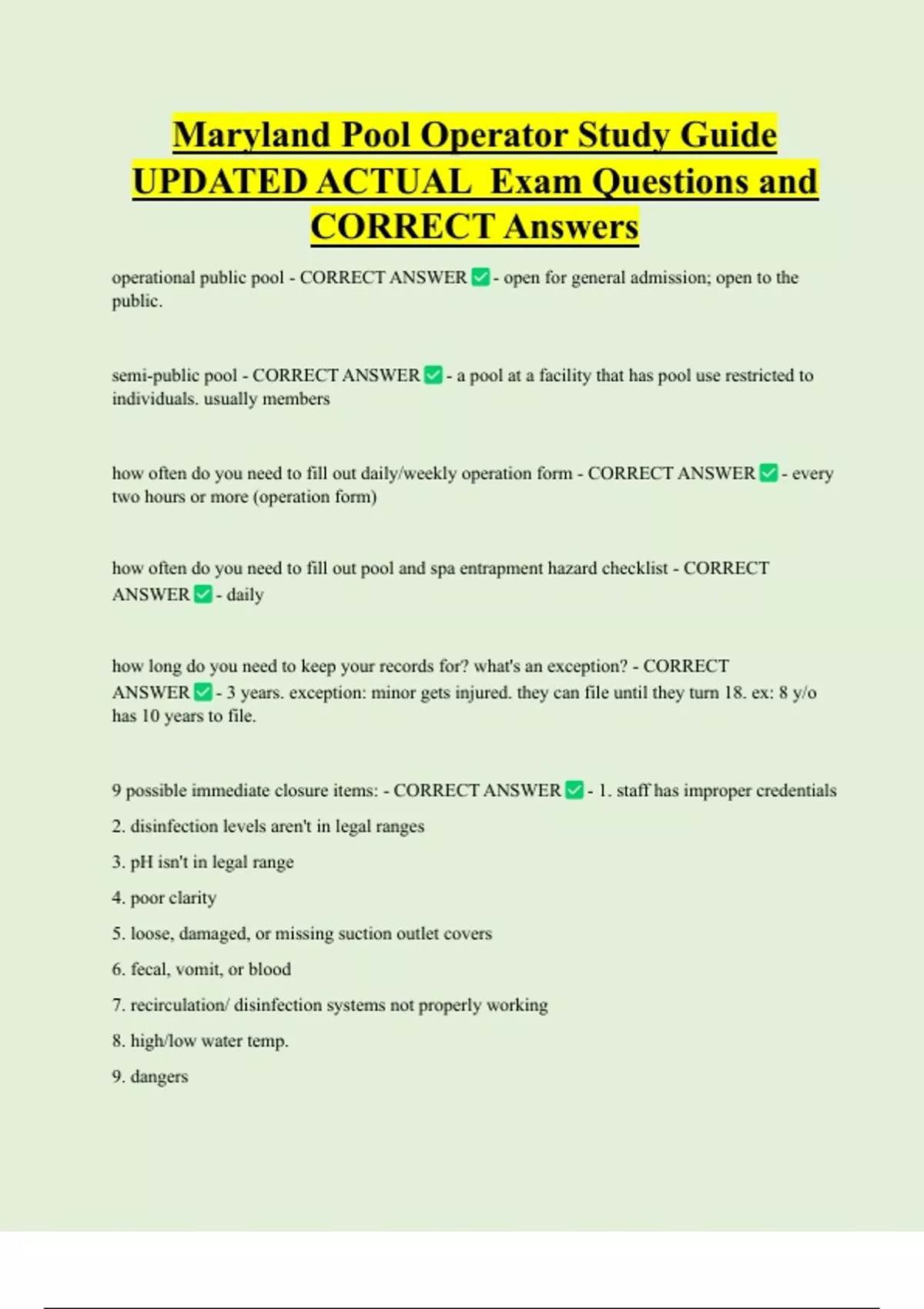 , staffing requirements for public pool (Operator and lifeguard) - CORRECT ANSWER -