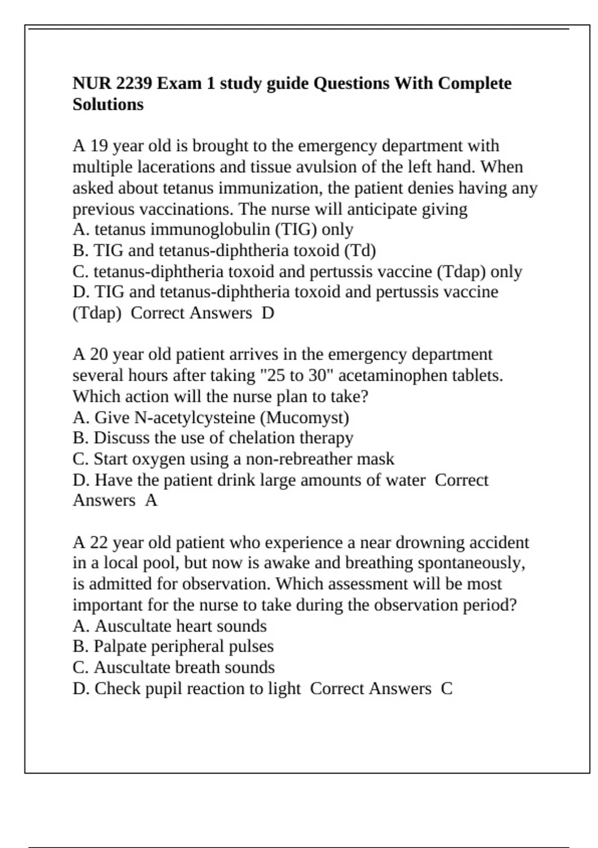 NUR 2239 Exam 1 study guide Questions With Complete Solutions