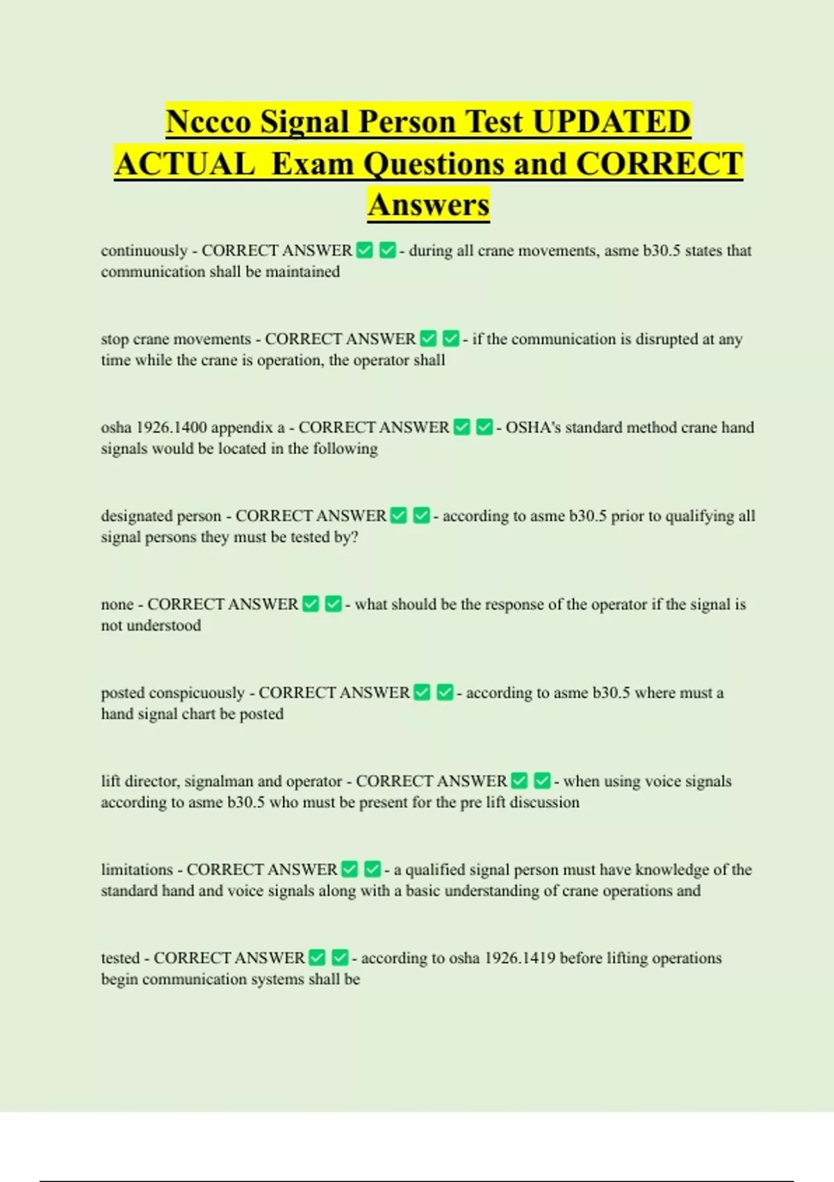 Nccco Signal Person Test UPDATED ACTUAL Exam Questions and CORRECT Answers