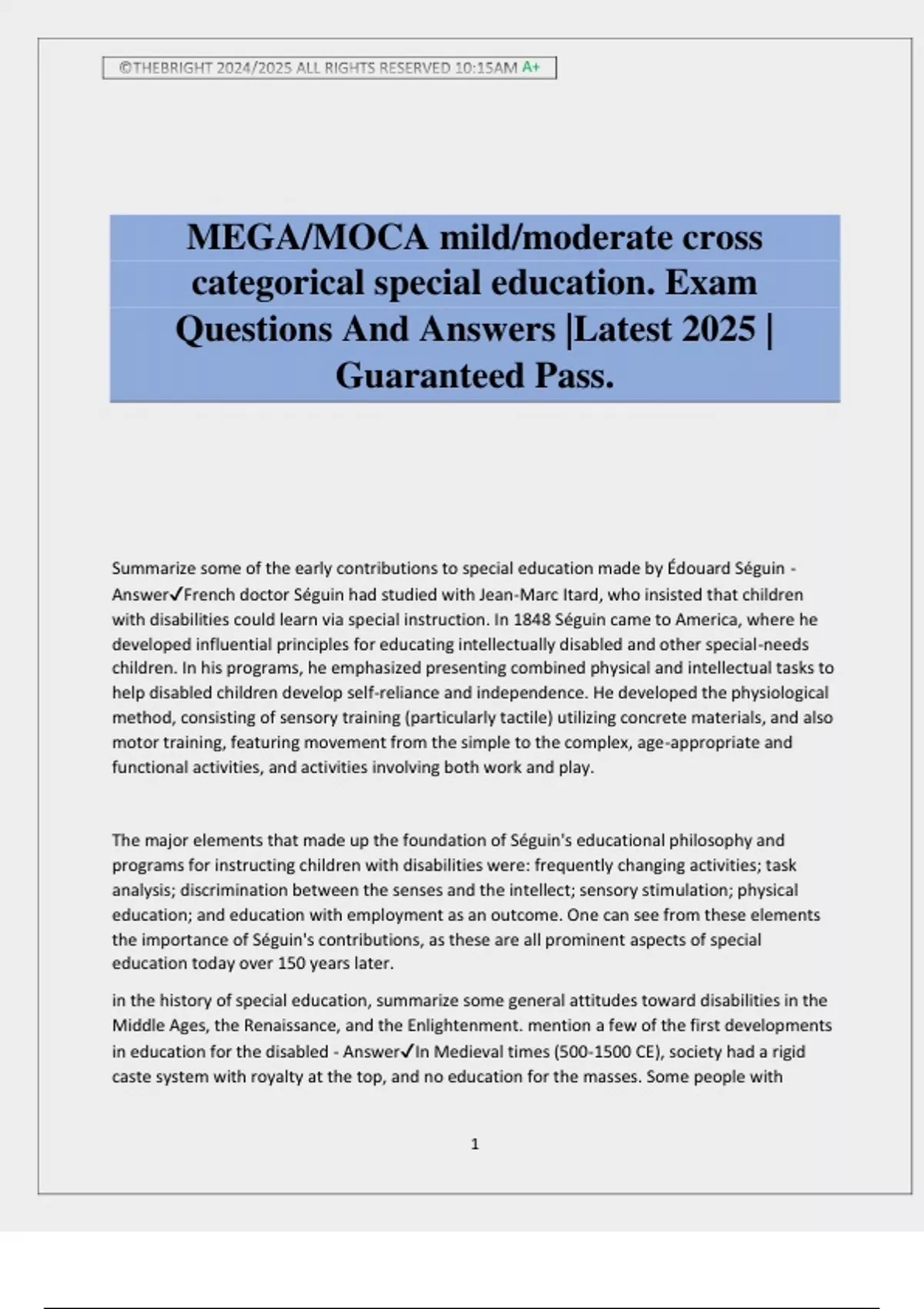 in education for the disabled - Answer✔In Medieval times (500-1500 CE), society had a rigid