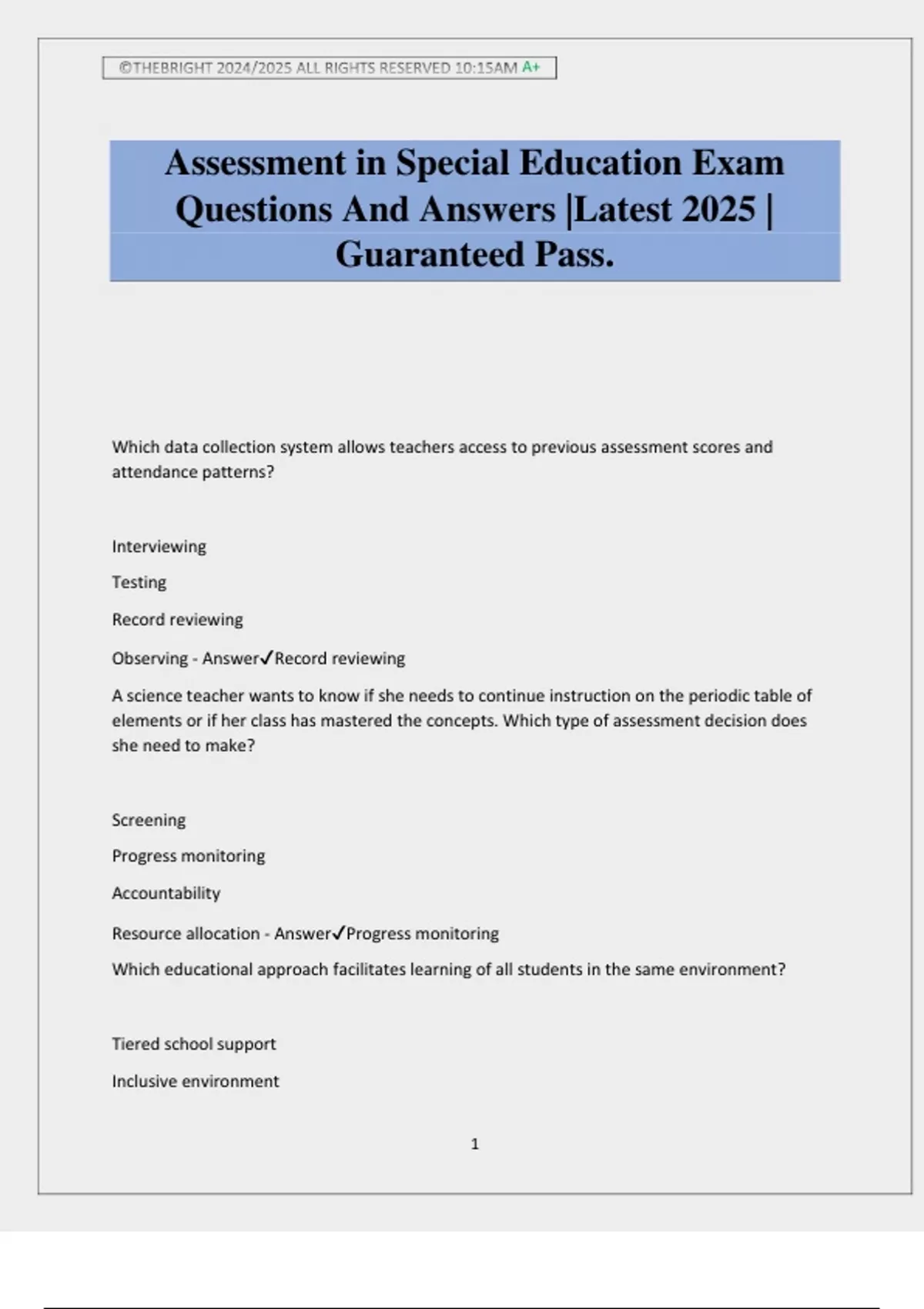 Assessment in Special Education Exam