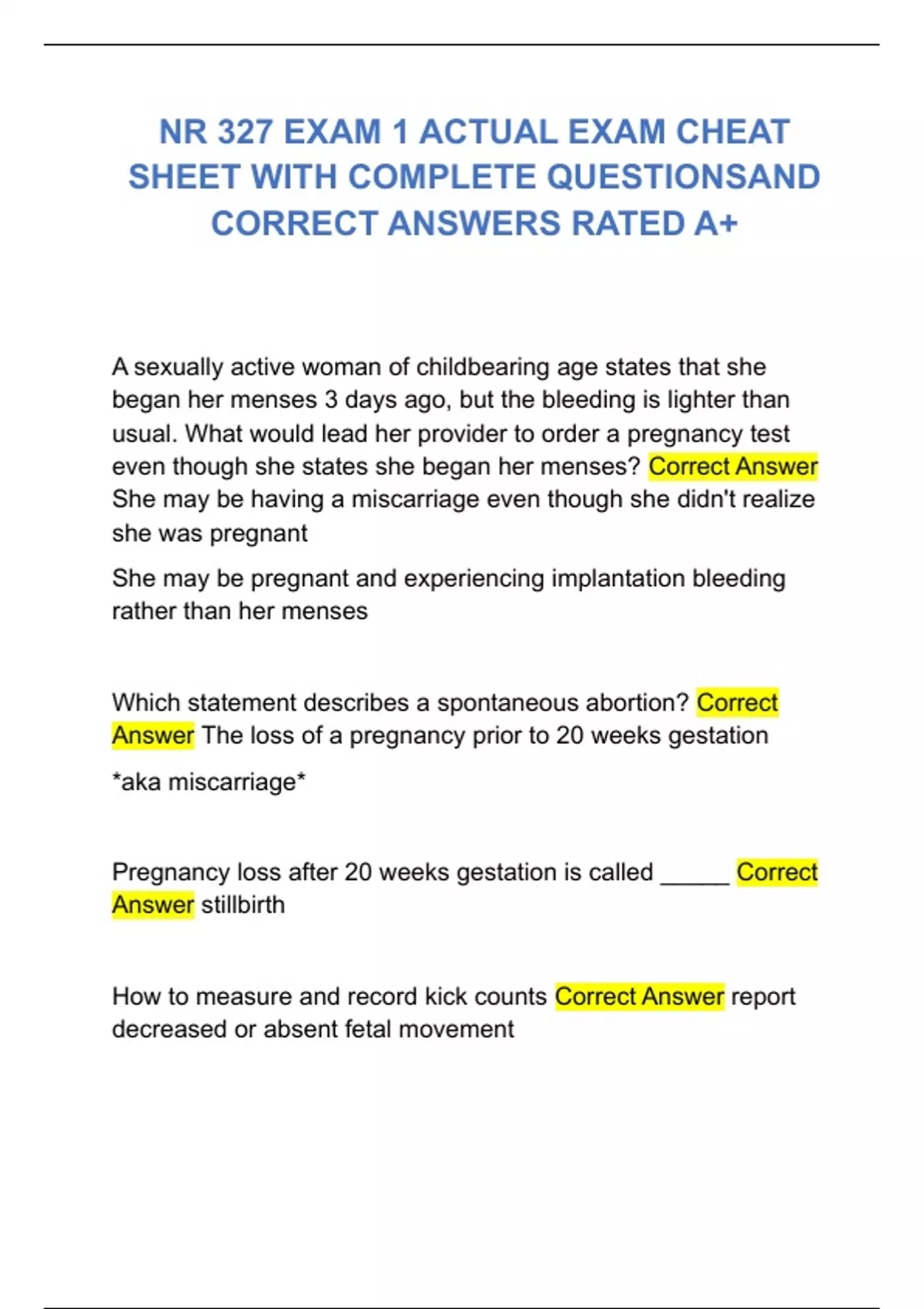 Answer The loss of a pregnancy prior to 20 weeks gestation