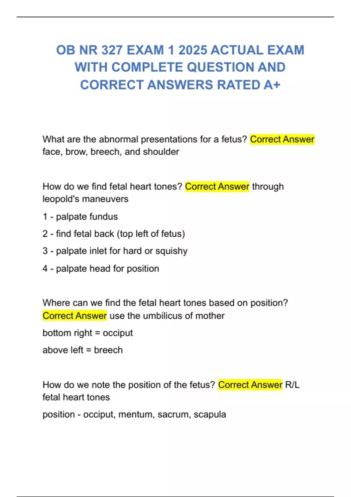 CORRECT ANSWERS RATED A+