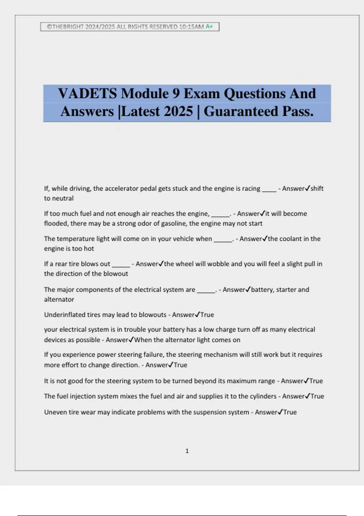 The temperature light will come on in your vehicle when _____. - Answer✔the coolant in the