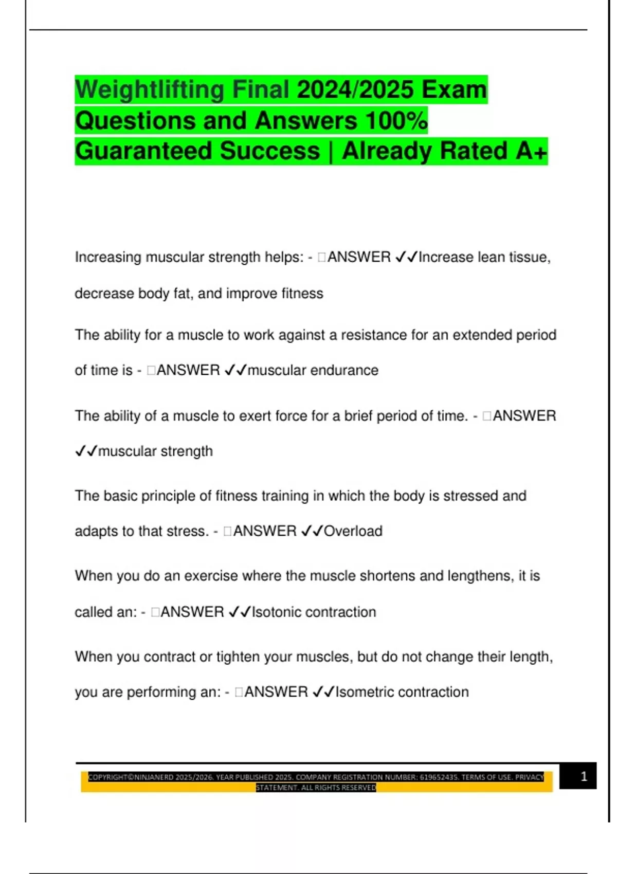 Weightlifting Final 2024/2025 Exam