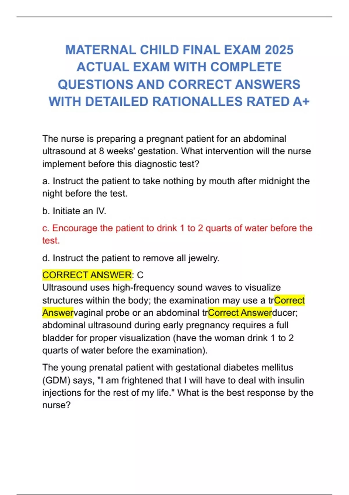 MATERNAL CHILD FINAL EXAM 2025 ACTUAL EXAM WITH COMPLETE QUESTIONS AND CORRECT ANSWERS WITH DETAILED RATIONALLES RATED A+