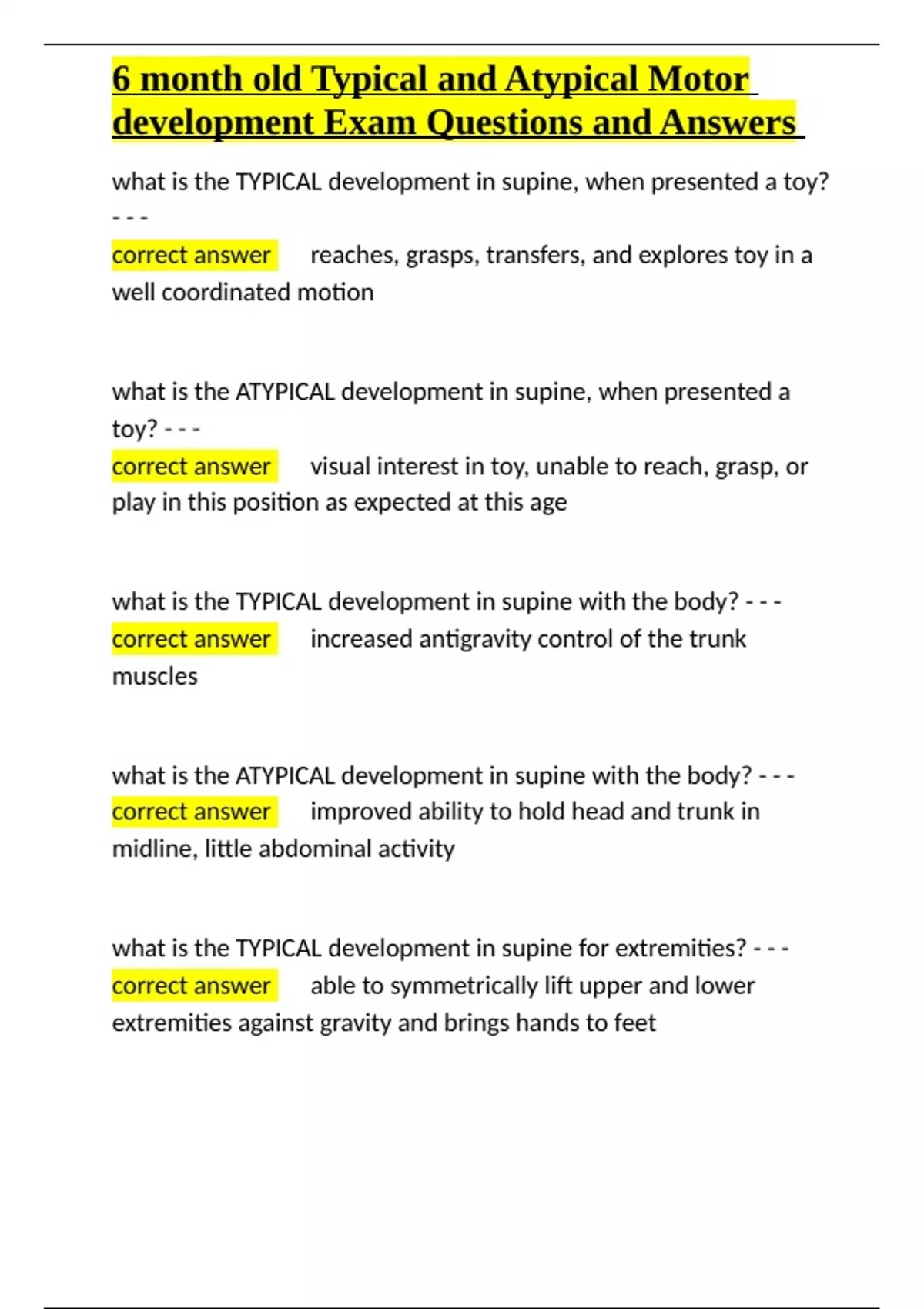 what is the ATYPICAL development in supine for extremities? - - -