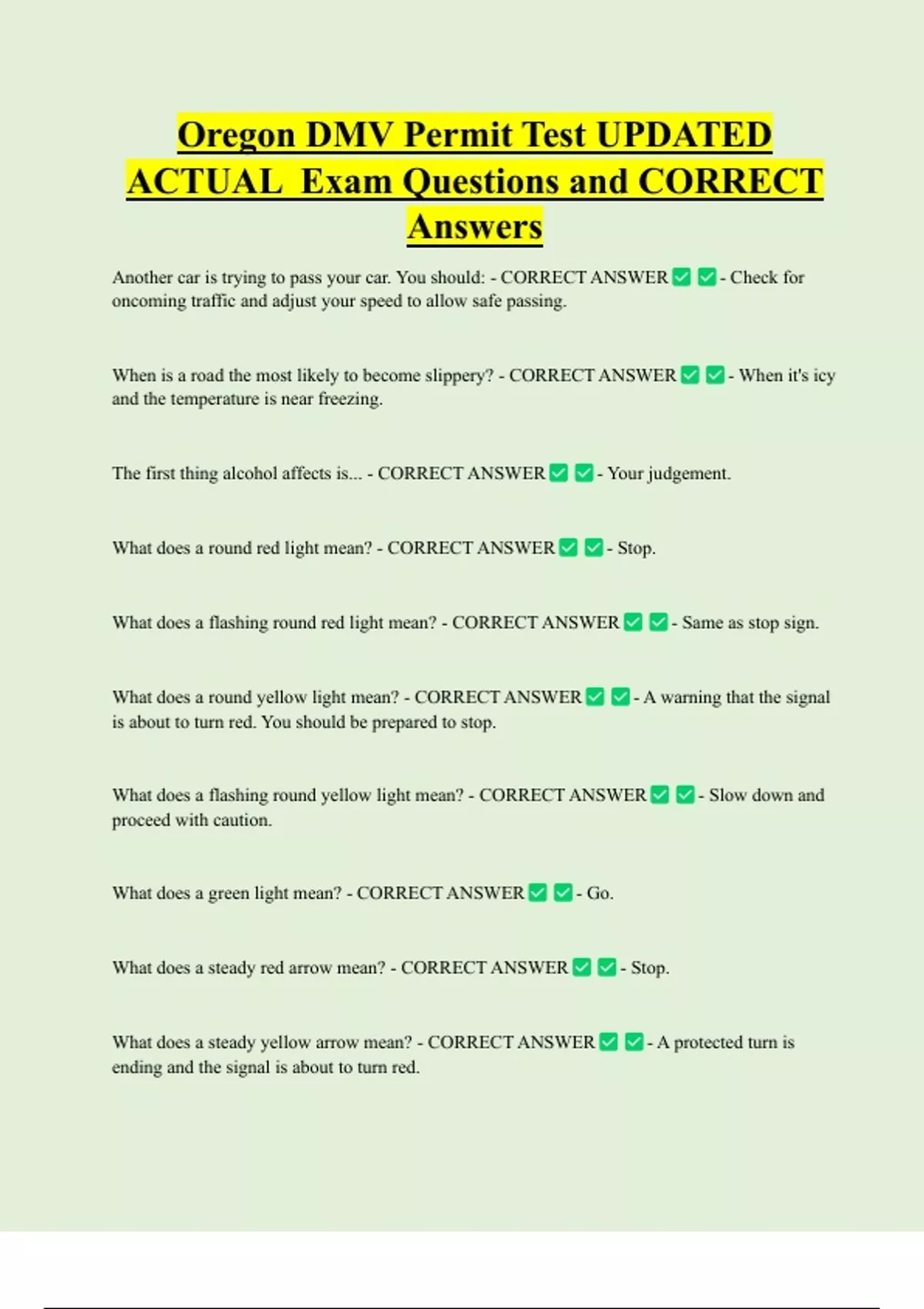 What does a flashing round yellow light mean? - CORRECT ANSWER - Slow down and