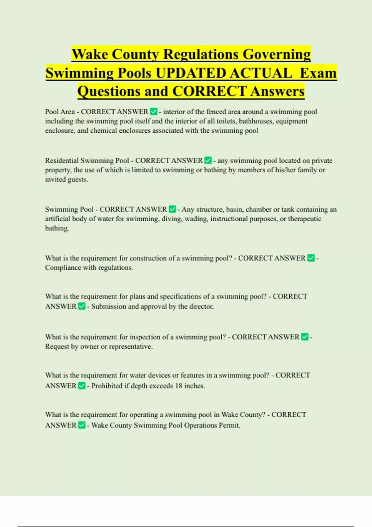 Swimming Pools UPDATED ACTUAL Exam