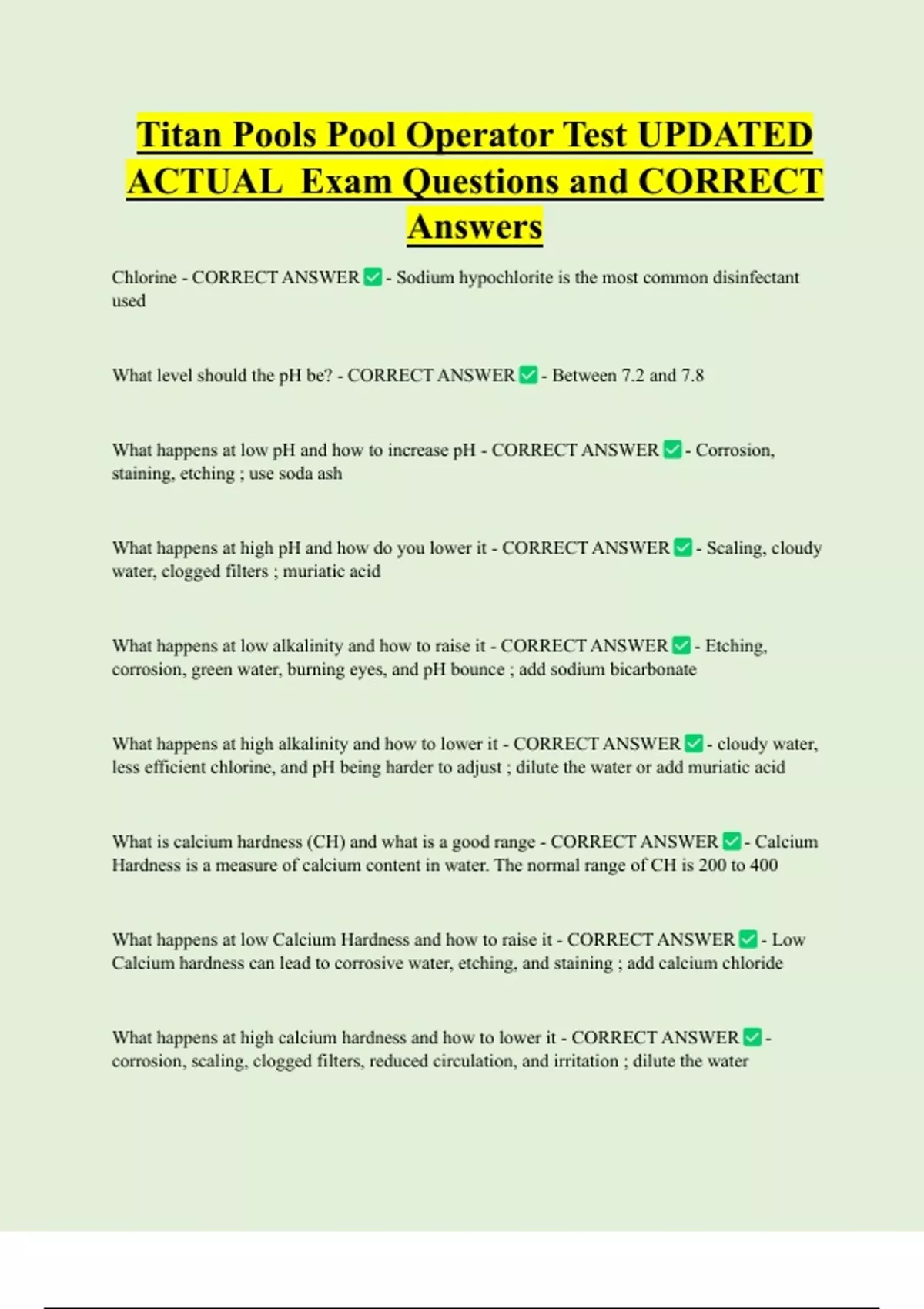 What level should the pH be? - CORRECT ANSWER - Between 7.2 and 7.8