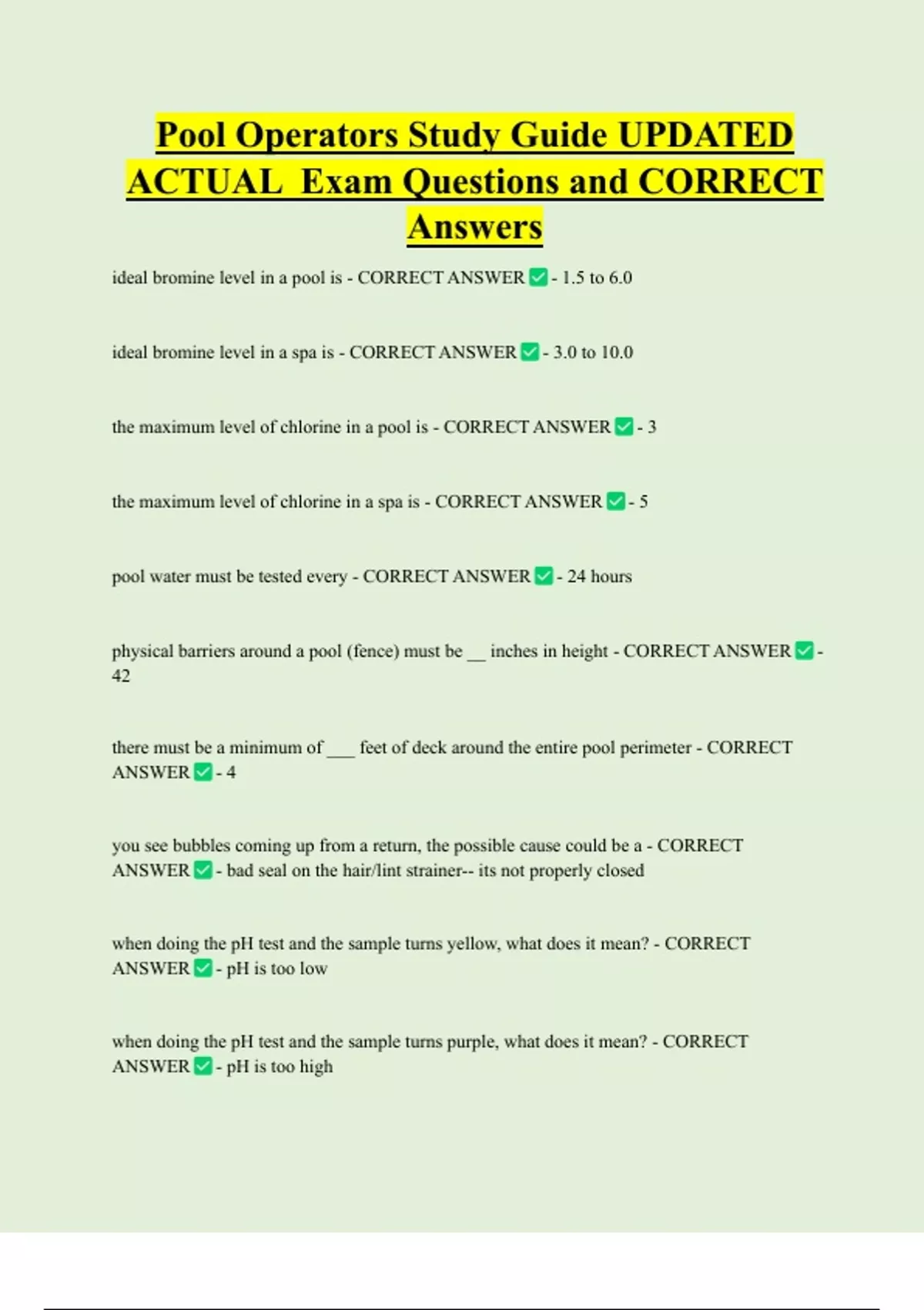pool water must be tested every - CORRECT ANSWER - 24 hours