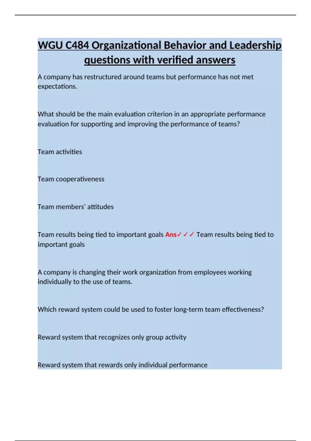 WGU C484 Organizational Behavior and Leadership questions with verified answer1.
