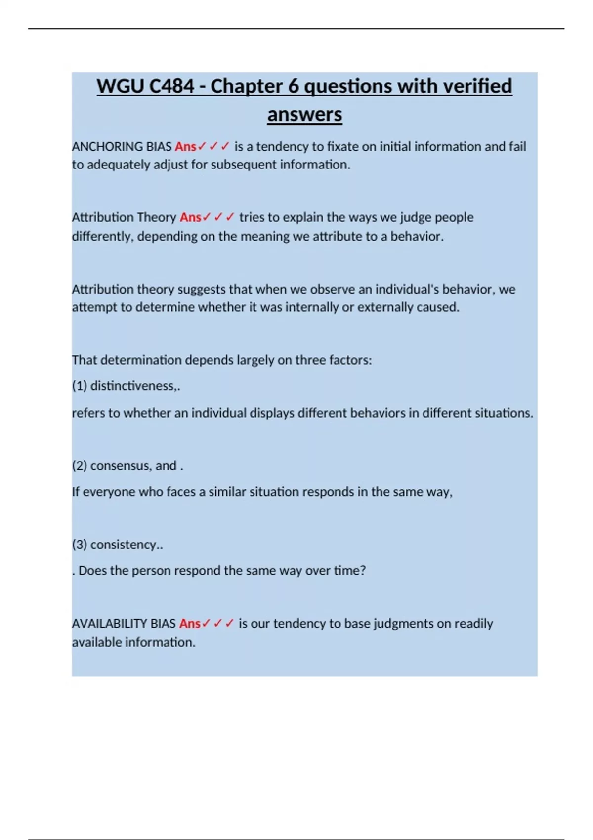 Common Biases and Errors in Decision Making Ans✓✓✓ Overconfidence Bias