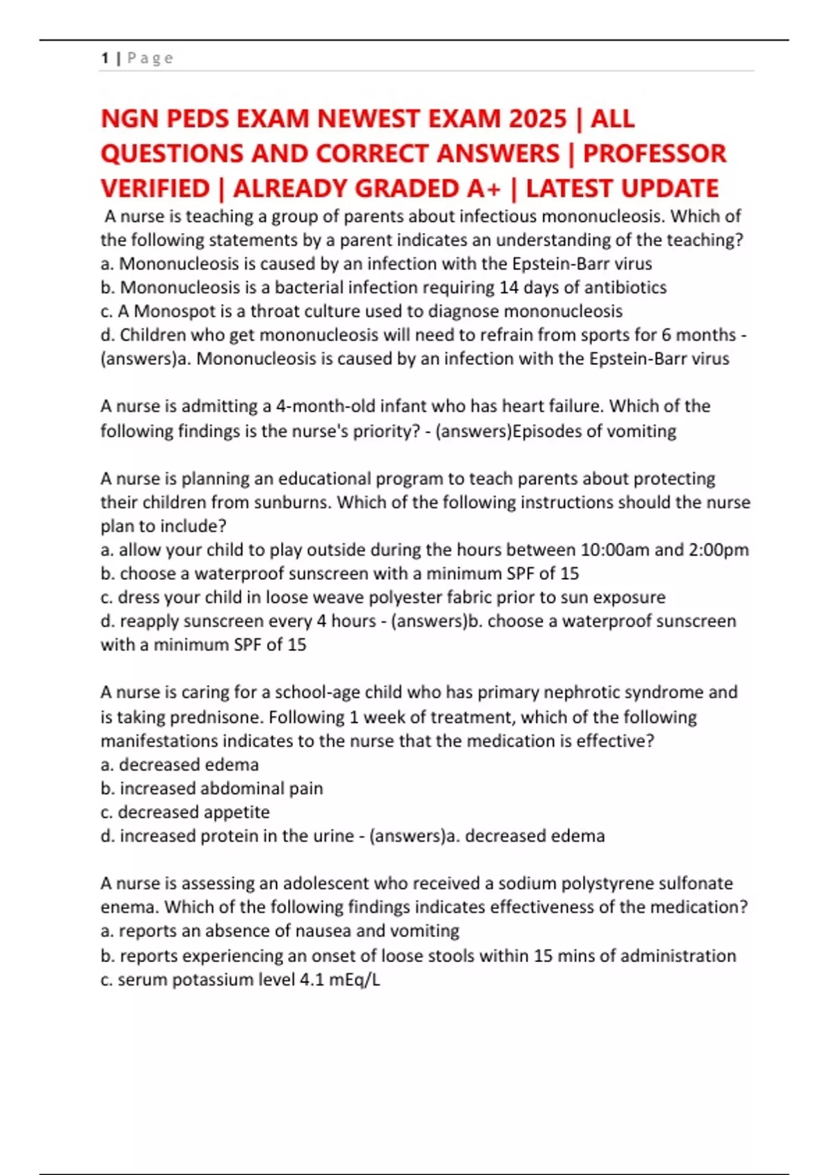 NGN PEDS EXAM NEWEST EXAM 2025 | ALL