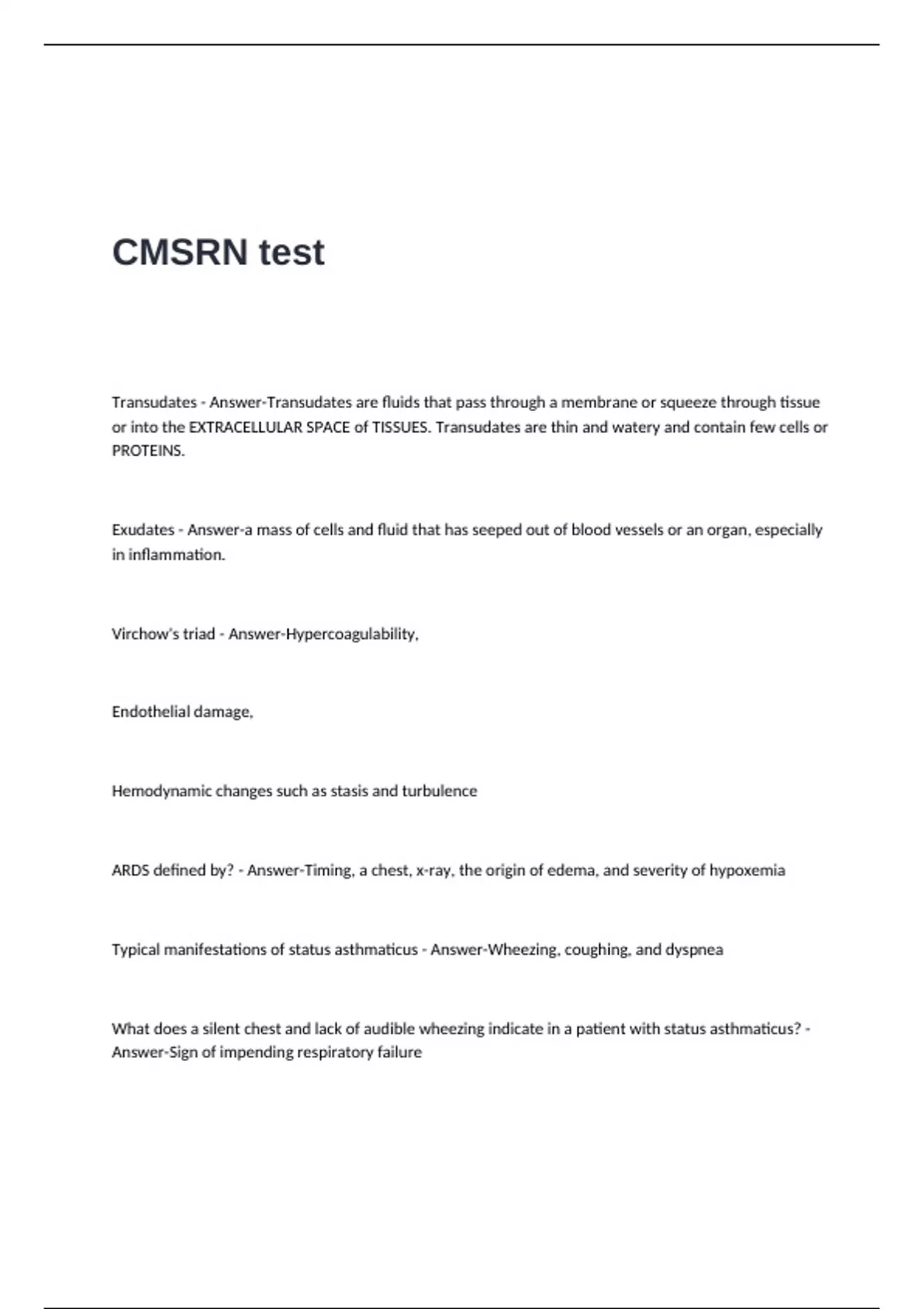 CMSRN Test Questions with 100% Correct Answers